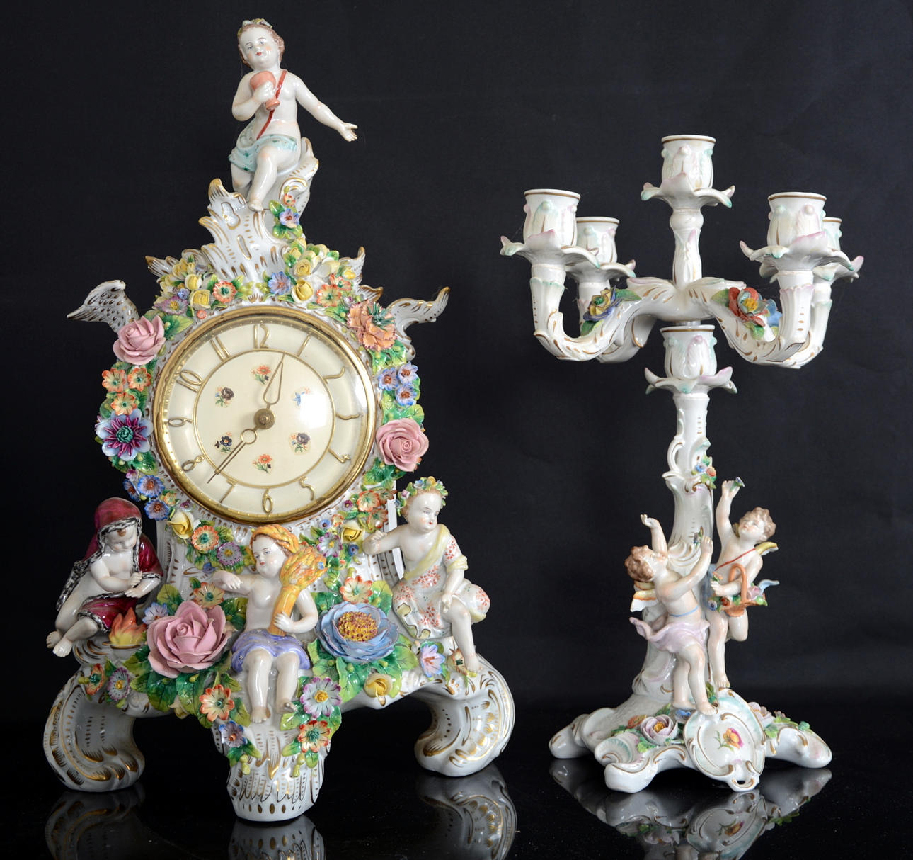 292724. KANDELABER SAMT BORDSUR , porslin, 1900-tal.