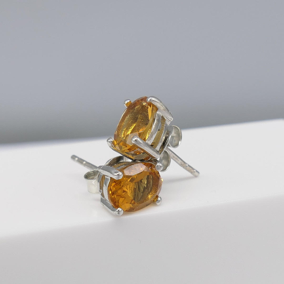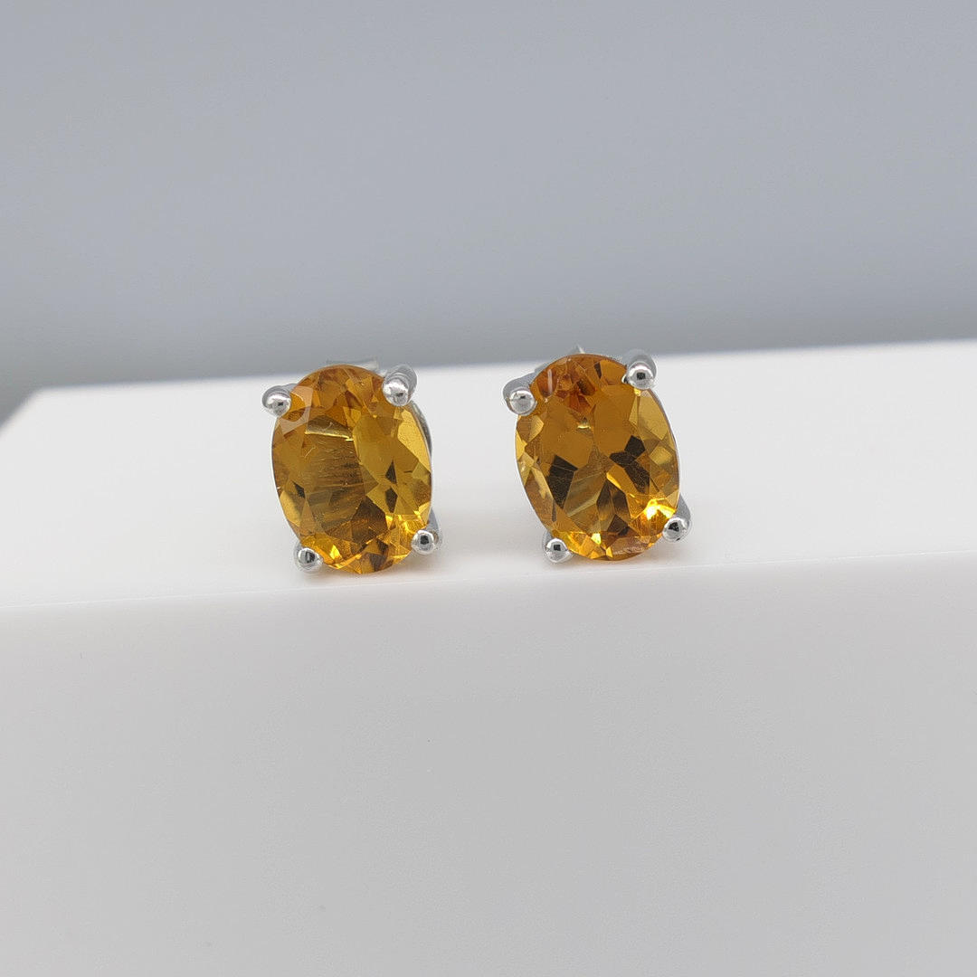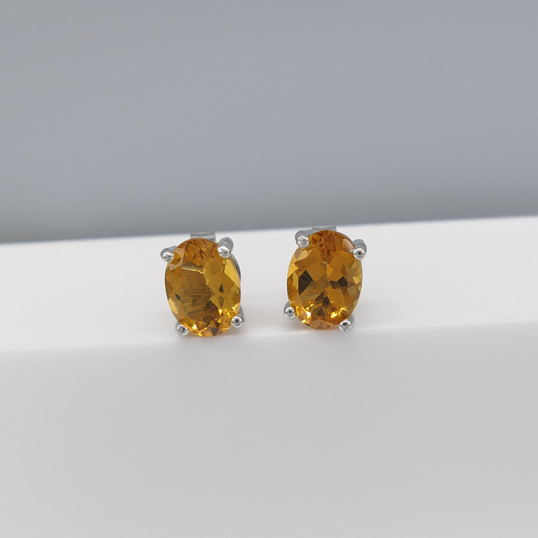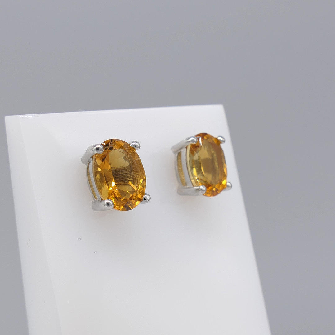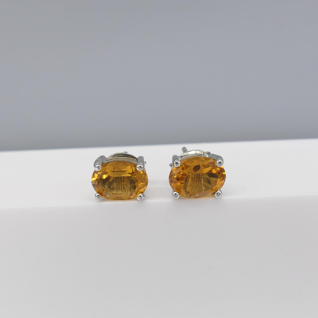 Varje tapp i detta par är kloset med en oval skuren djup orange/gult tonad citrin som mäter 8 x 6 mm.