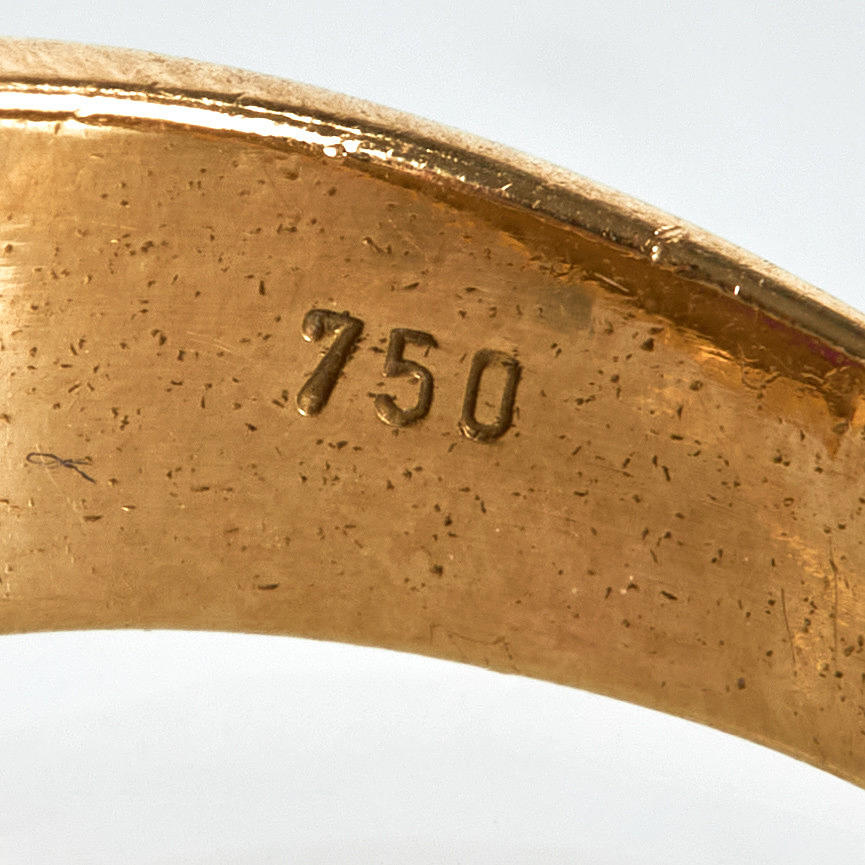 2930285. RING, 18 k guld, röd sten.