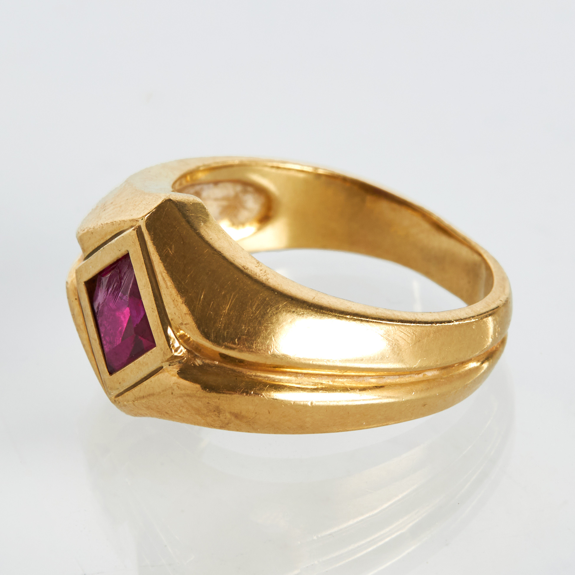 2930285. RING, 18 k guld, röd sten.