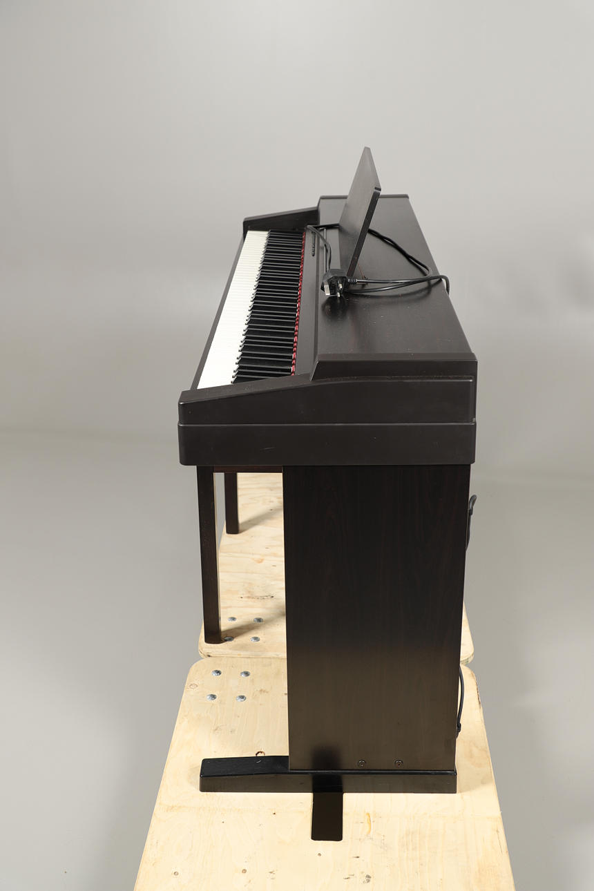 Modell: HP 1600e. Höjd 81cm x Längd 143cm x Djup 46cm. Tillsammans med en matchande pianopall, sitthöjd 52cm. Inkluderar strömkabel och bruksanvisning. Fast justerbart notställ.