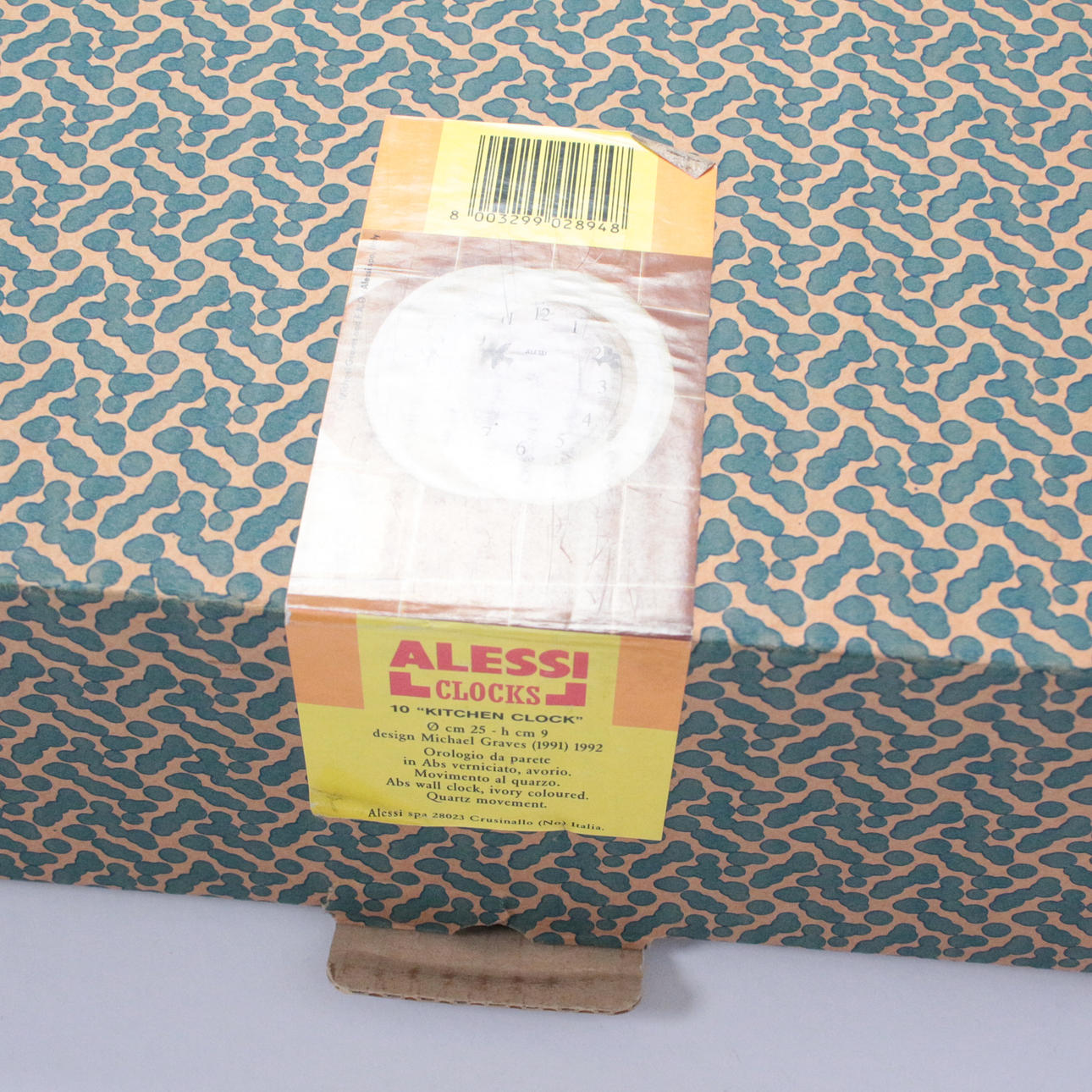 Alessi, Italien, design: Michael Graves, väggklocka 'Kitchen Clock', 1992, plast, vit, Mått ca.Ø 25 cm, höjd 9 cm.