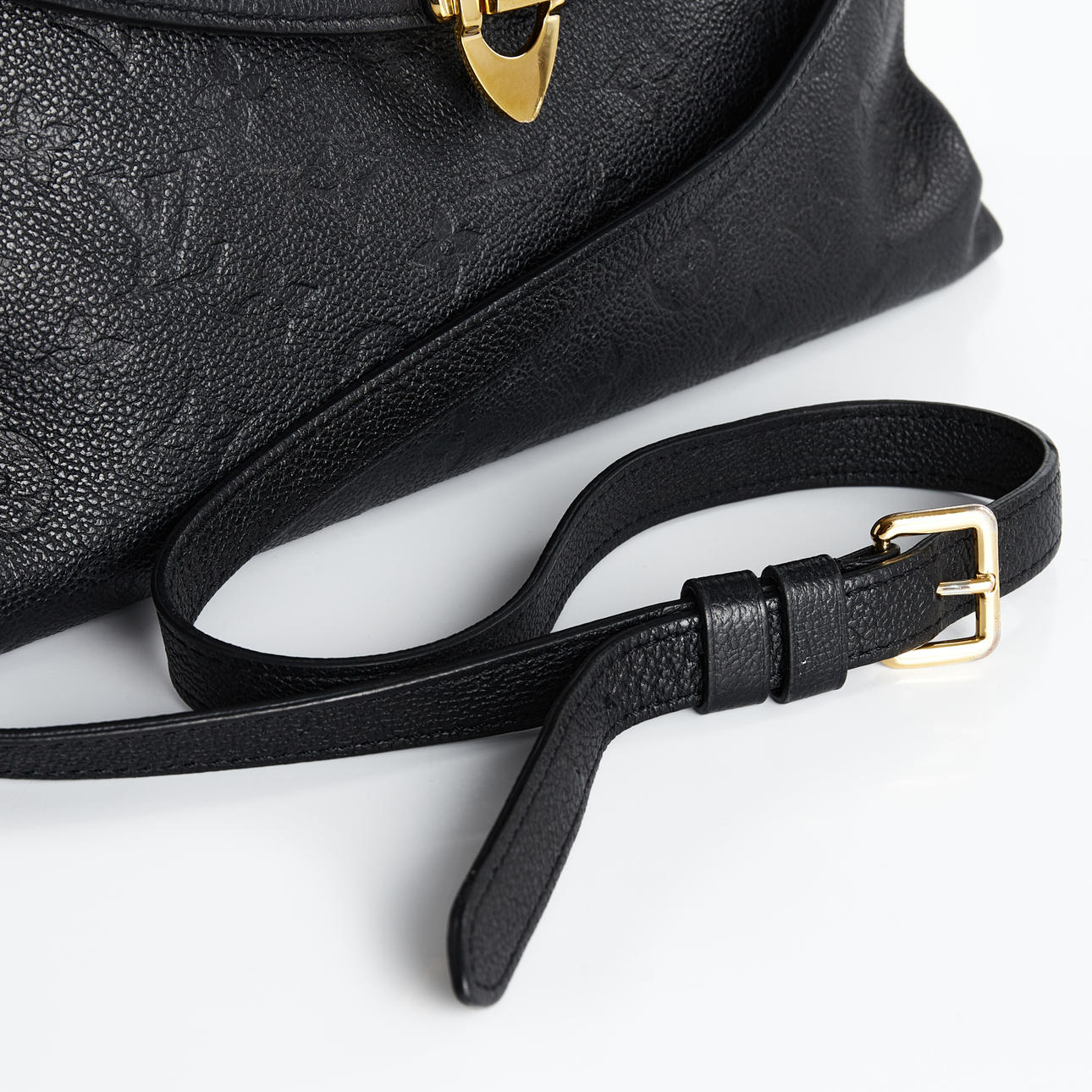 "Black Monogram Empreinte Leather Georges MM Bag", svart handväska i läder med axelband, detaljer i mässing, märkt "® Louis Vuitton Paris made in Spain" Två fack, ett invändigt med dragkedja.