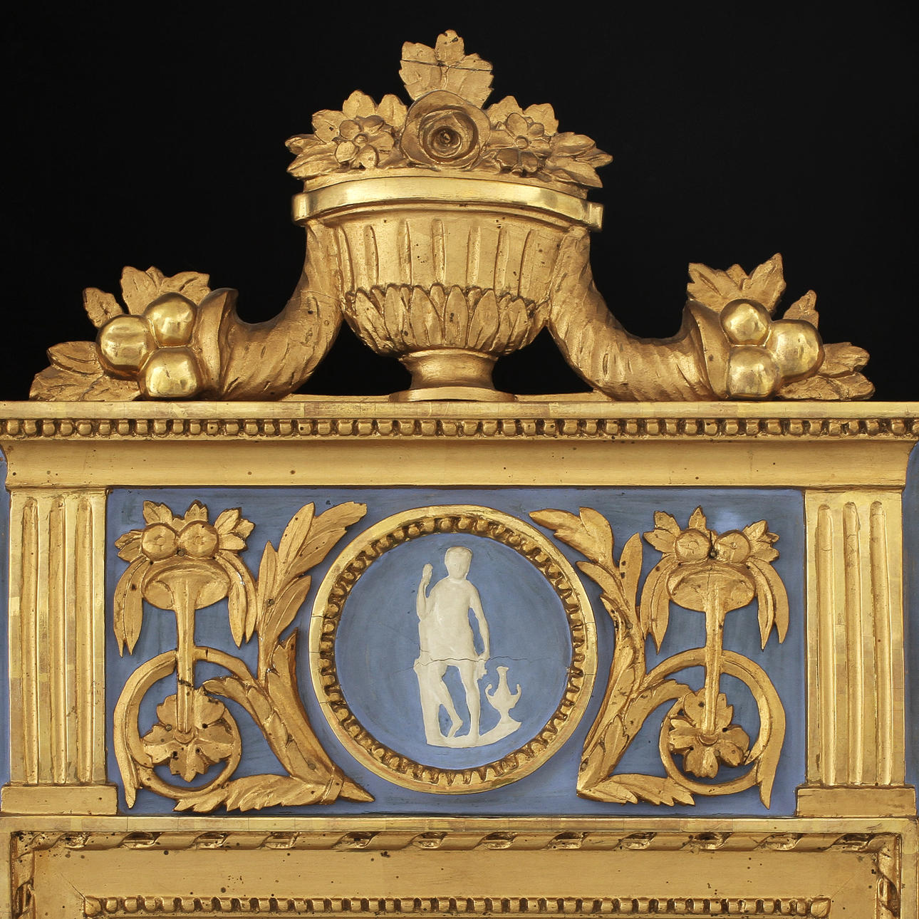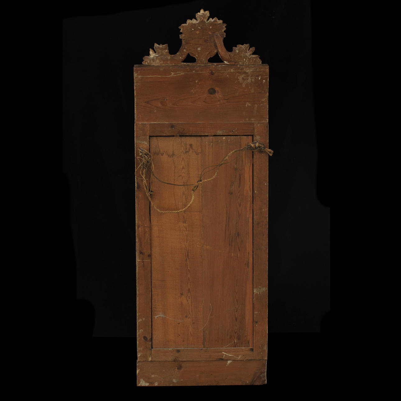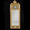 Rektangulär form. Förgylld och bronserad, överstycke med central medaljong. Höjd 142 cm, bredd 48 cm.