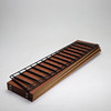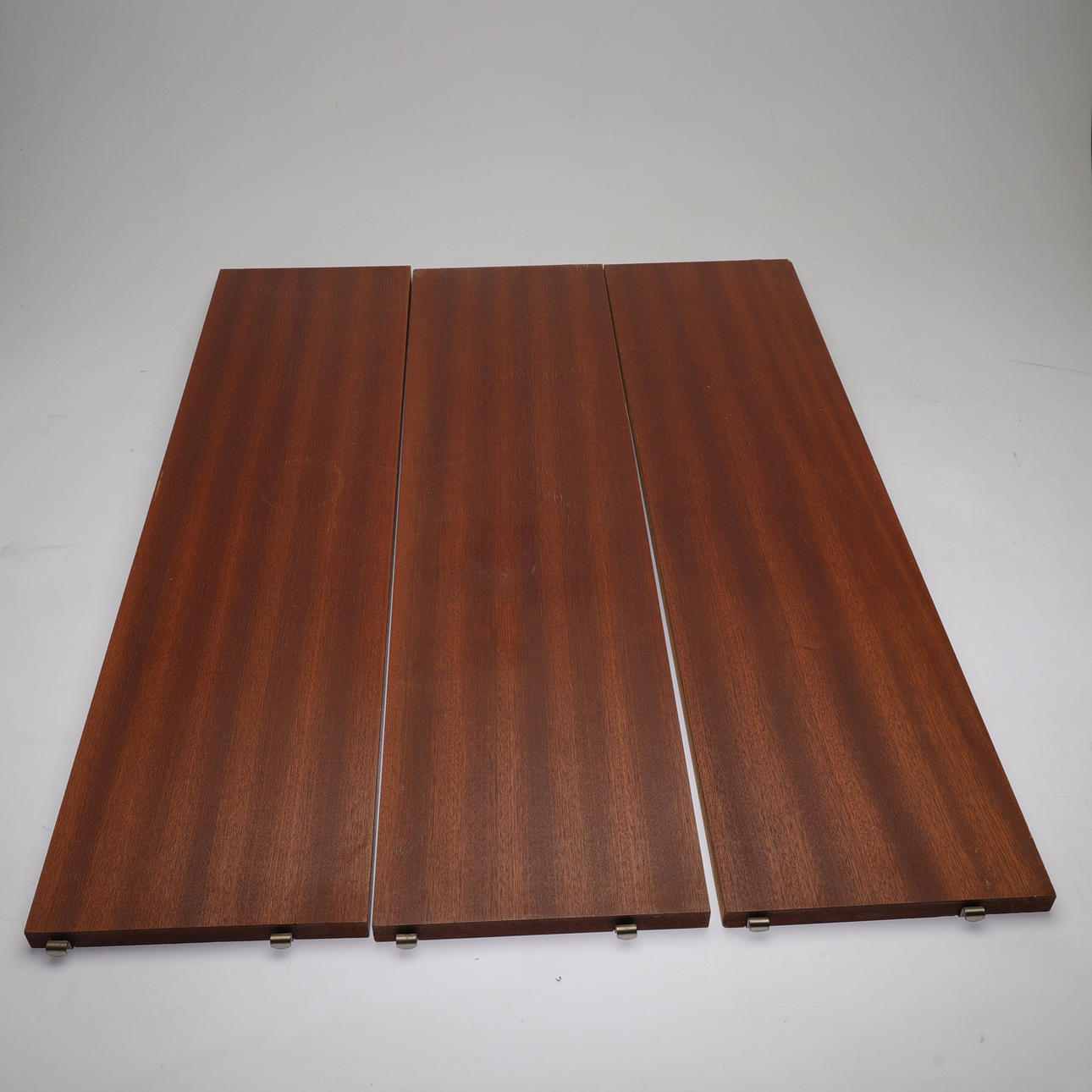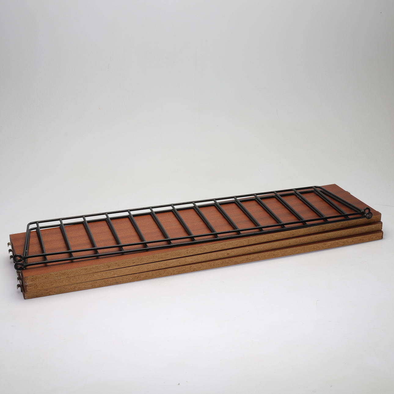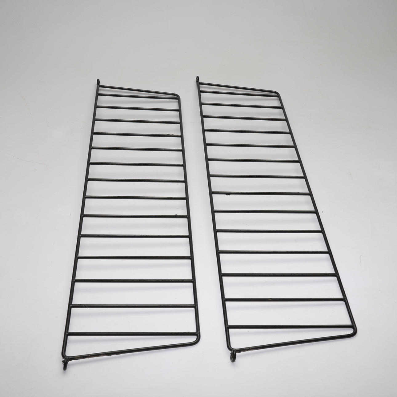 2st gavlar i lackerad metall, höjd ca 76cm, bredd ca 18cm. 3st hyllplan á ca 78x20cm vardera.