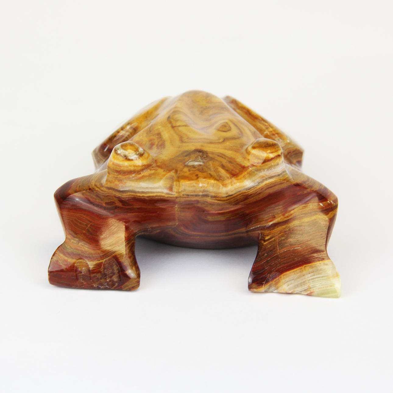 En bandad agatfigur av en groda, 10,2 x 7,9 cm.