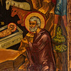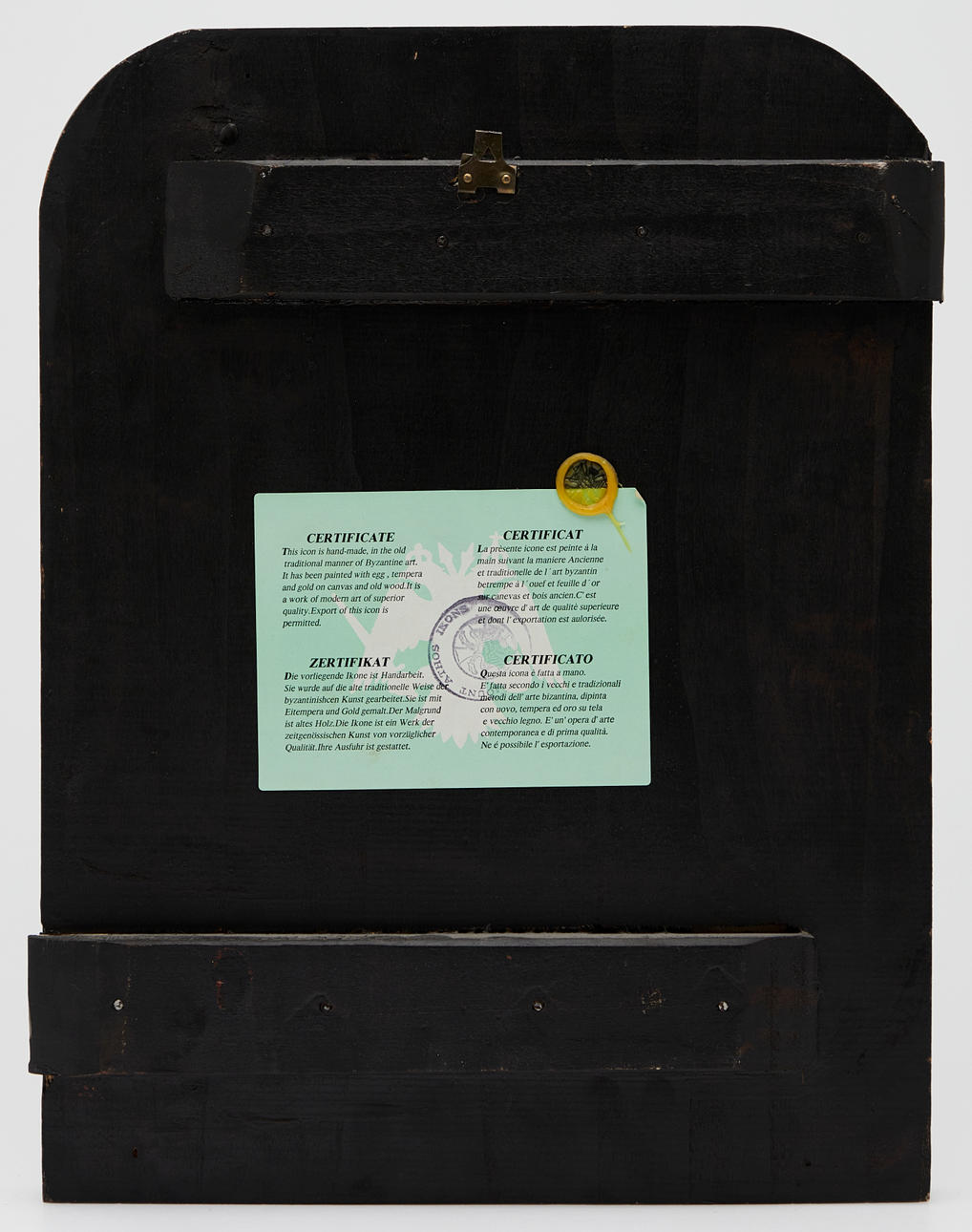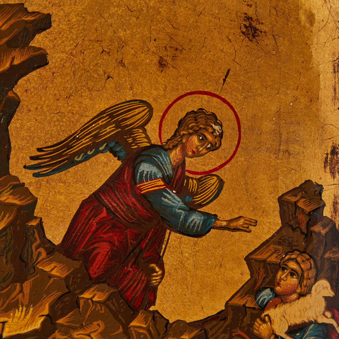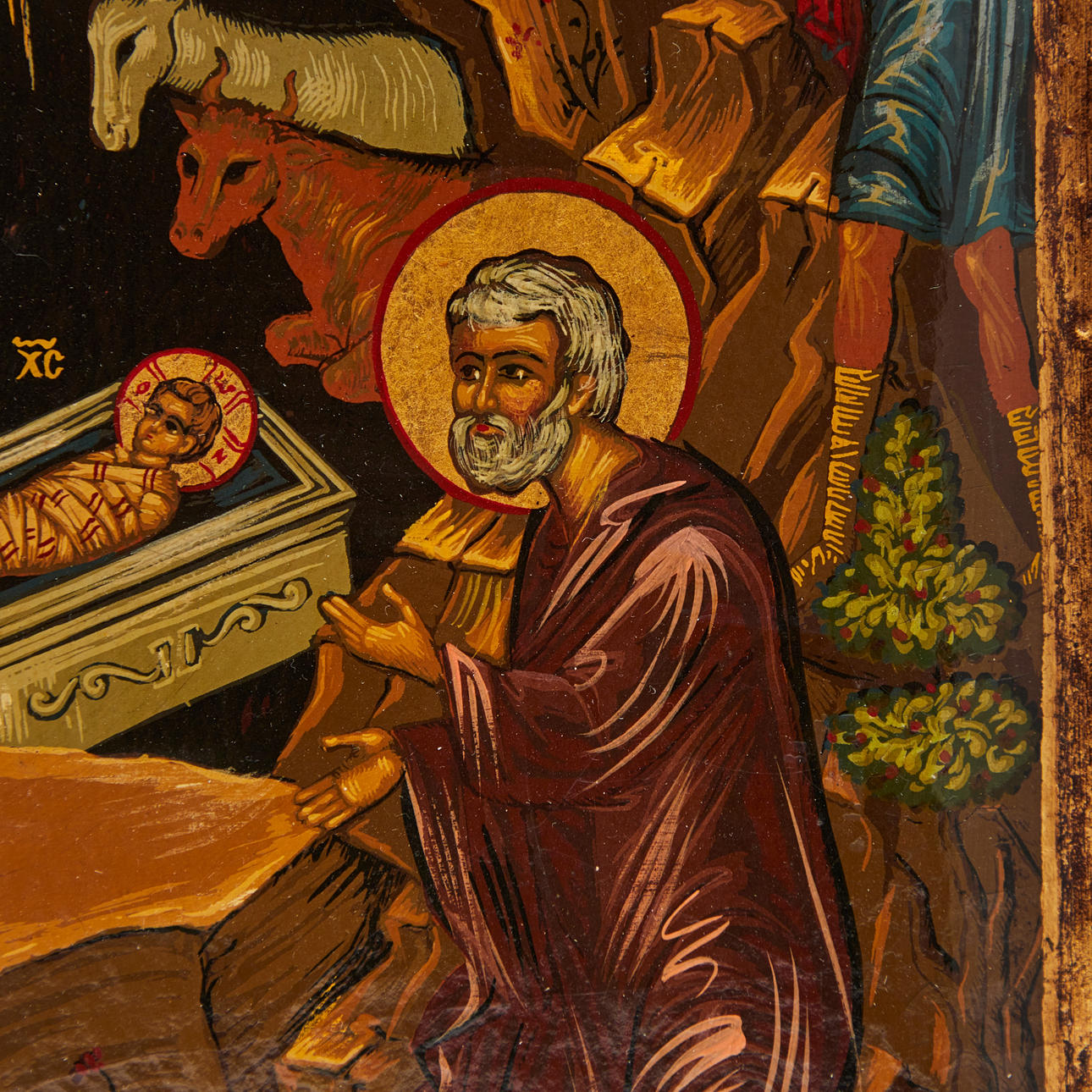 Ikon/bild av ett helgon, Födelse, tempera på trä. Skildring av födelsen med tillbedjan av magierna och lovande änglar, 42x32cm.