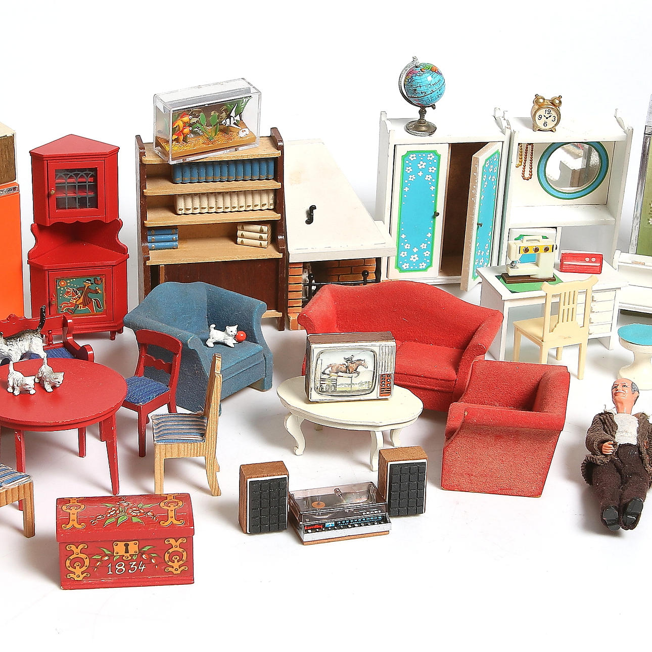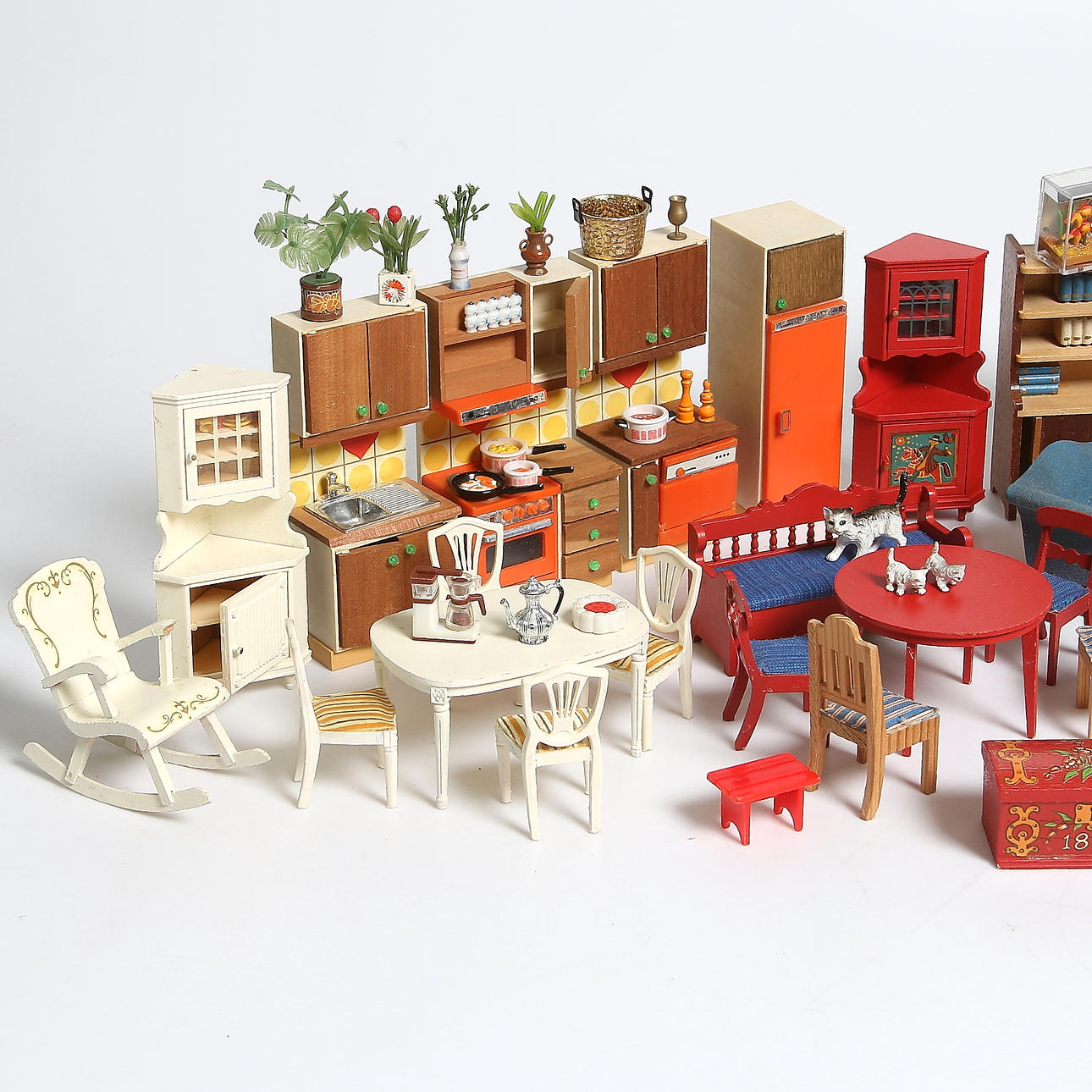 293830. DOCKSKÅPSMÖBLER, DOCKOR, mm. Bl.a. Lundby. 1970-tal.