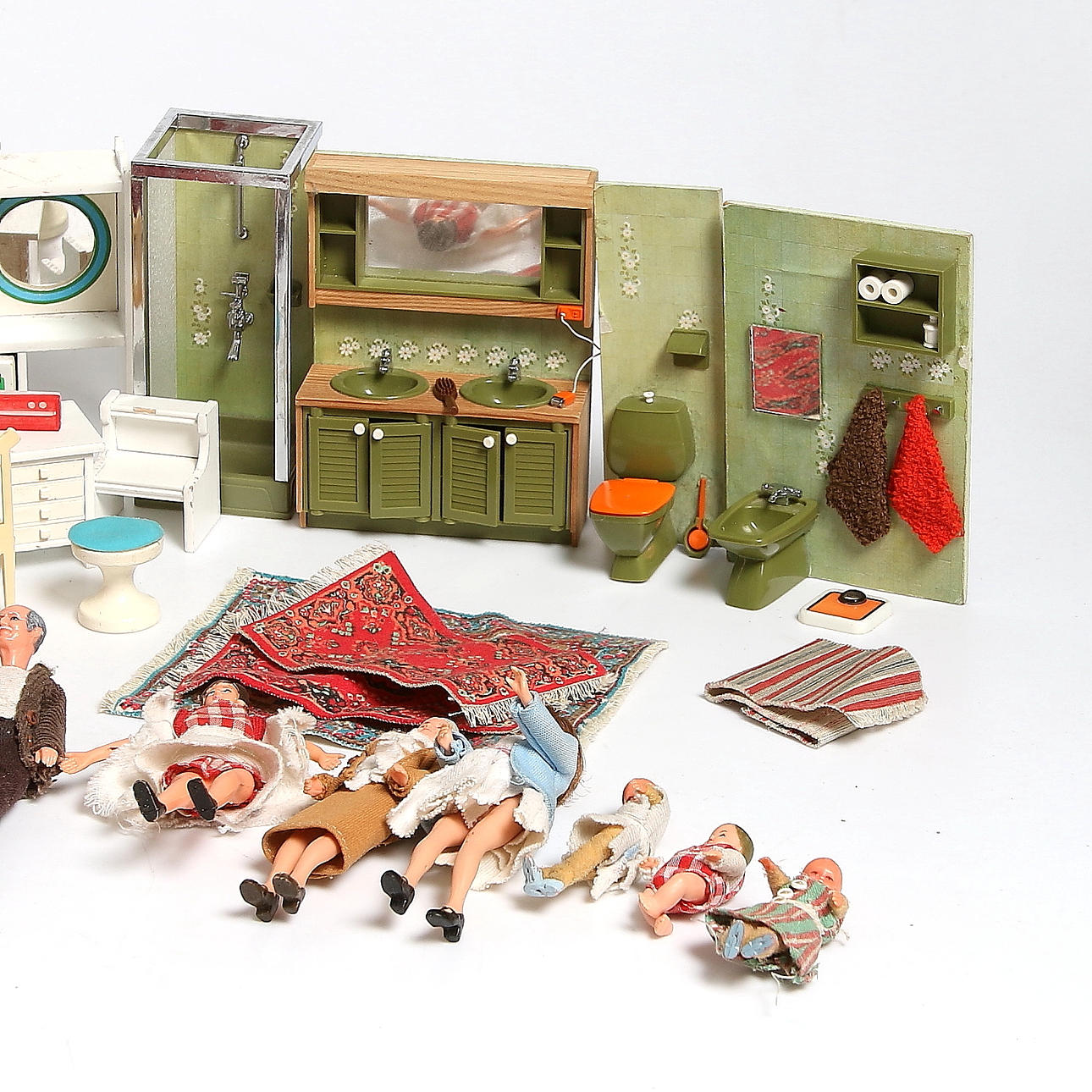 DOCKSKÅPSMÖBLER, DOCKOR, mm. Bl.a. Lundby. 1970-tal.