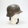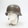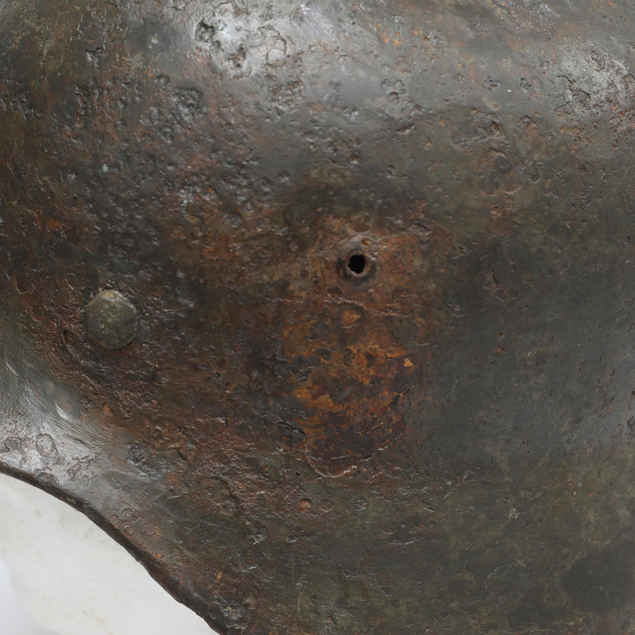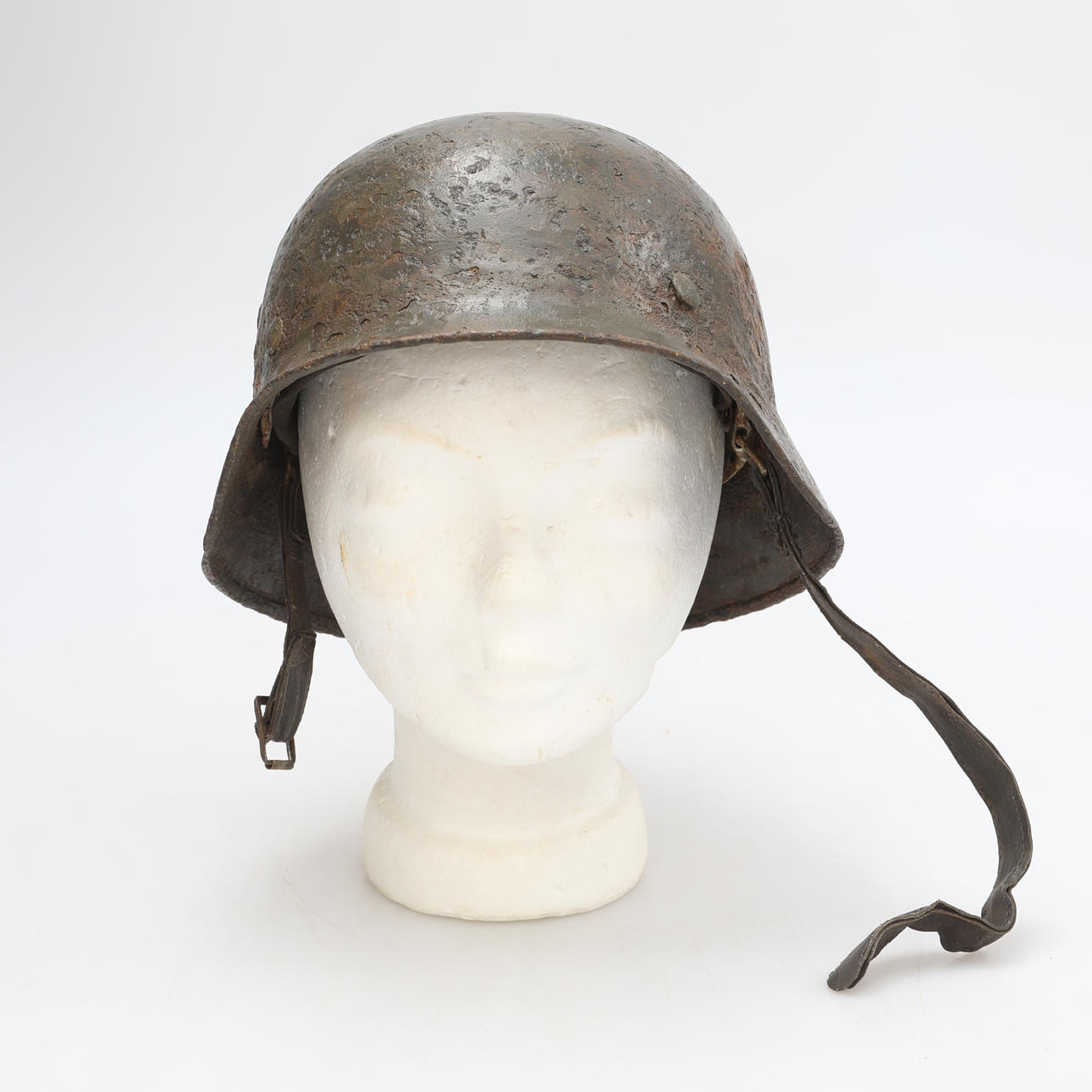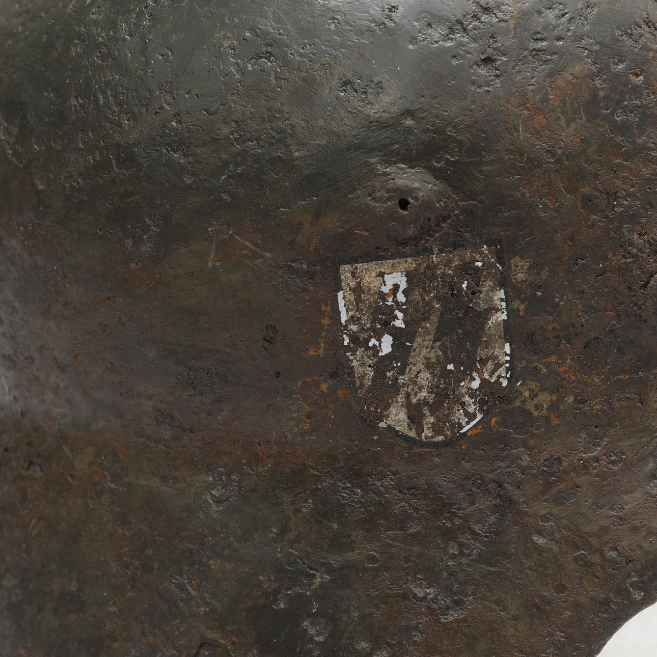 En tysk stålhjälm M 35 felaktigt försedd med SS-markering. Läderinredning. Längd ca 28 cm, bredd ca 23 cm, höjd ca 16 cm.