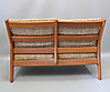 Soffa solid ram i teak trä, med lösa sittdynor och upphängda ryggkuddar. Grovt ull tyg lock.
