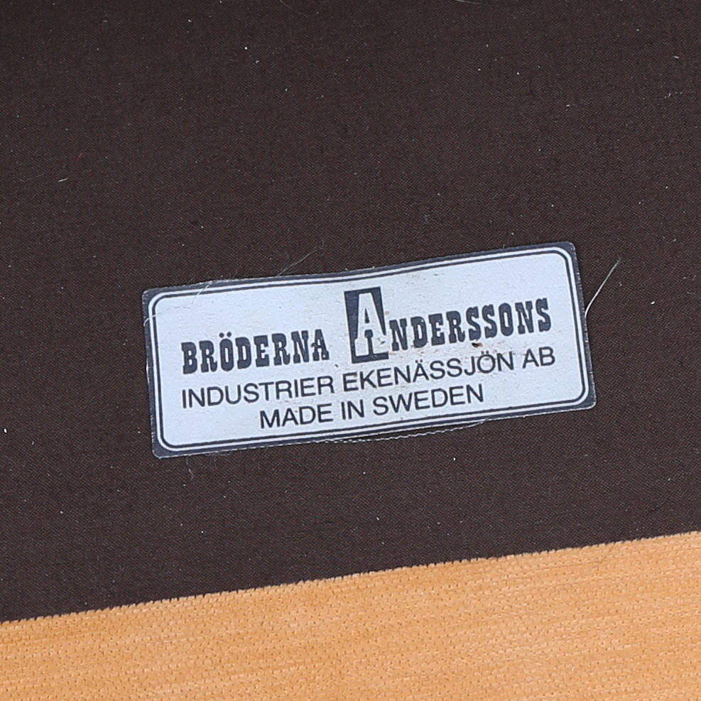 Orange klädsel. Etikettmärkt "Bröderna Anderssons industrier Ekenässjön AB Made in Sweden".