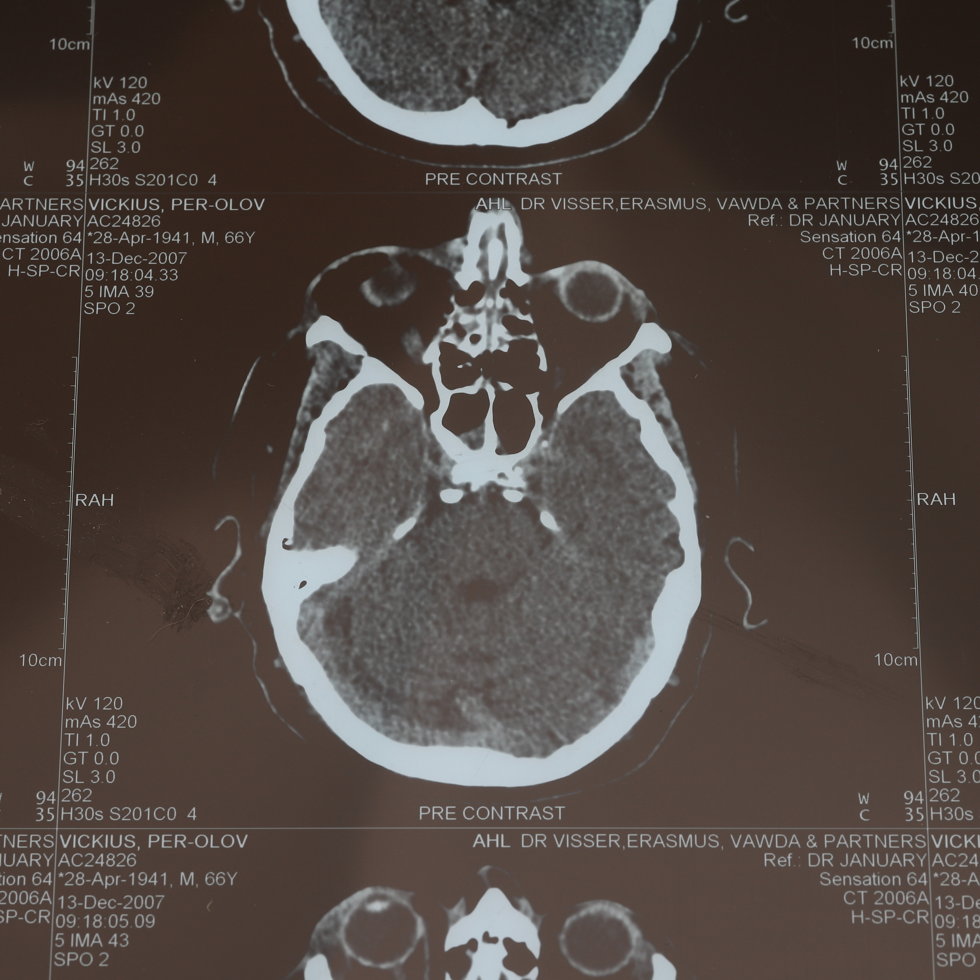 2939784. RÖNTGENPLÅT, plast, skottskada till huvud, 2007.