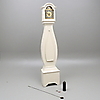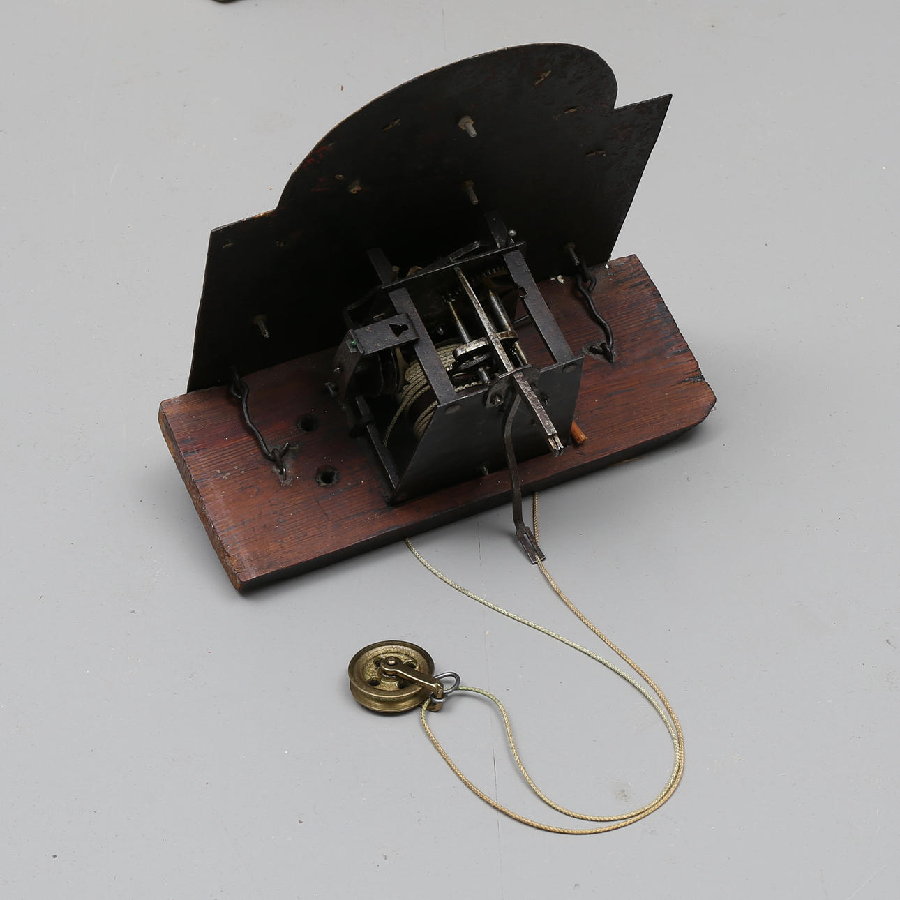Slitage, renoverad och kompletterad, senare bemålad. Ej genomgånget urverk. Inristat personnummer på urtavlan, i fyllda siffror, skada på pendel.