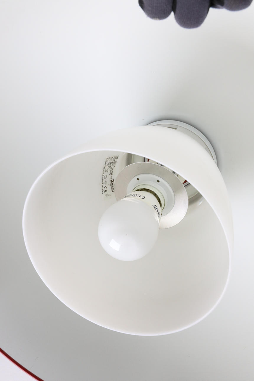 Lackerad metall och innerkupa i plast. Diameter 45 cm.