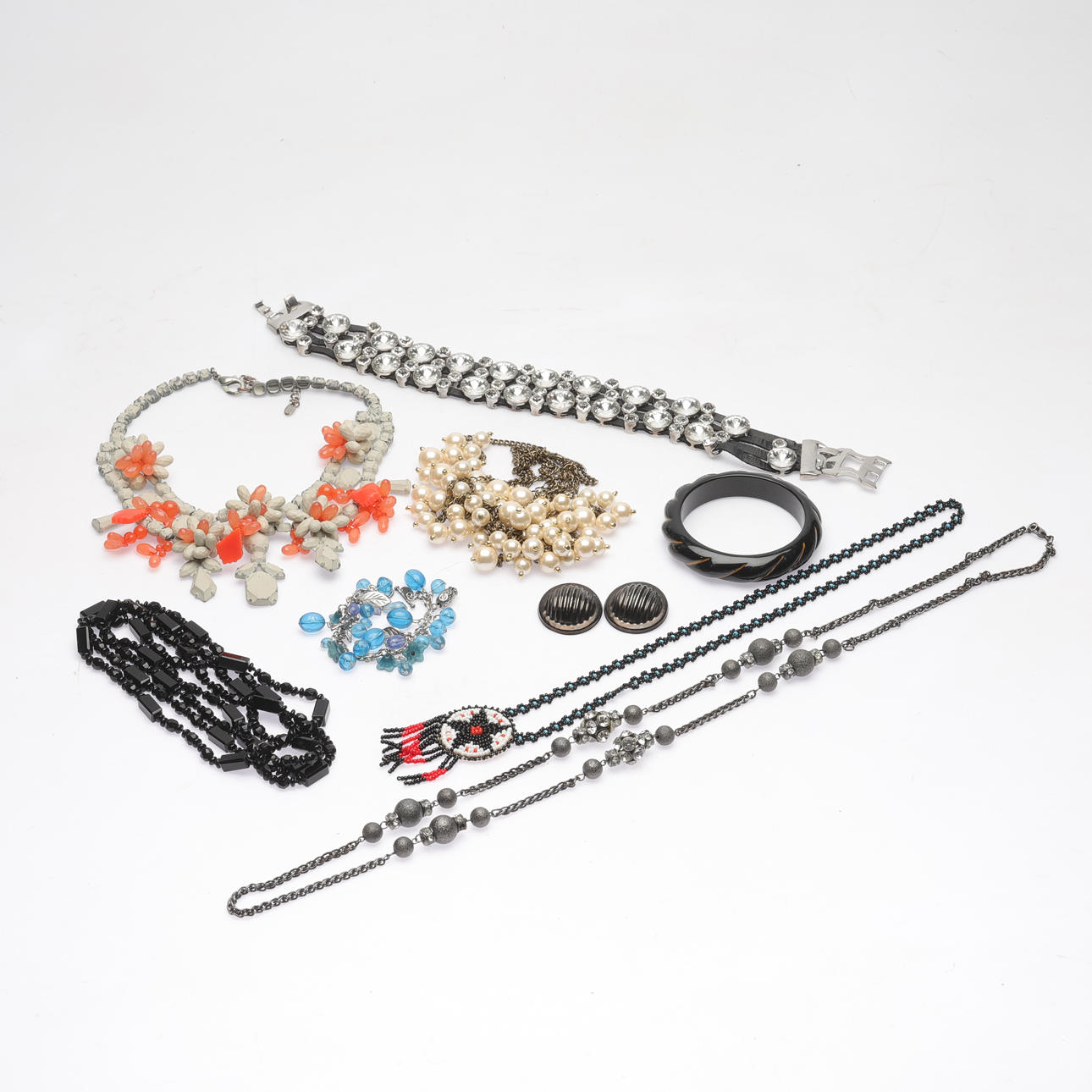 Bijouterier, b.la. Collier och ringar. Armbandsur, Drott. Solgalsögon, 5st, b.la. Ralph Lauren och Tiger of Sweden.