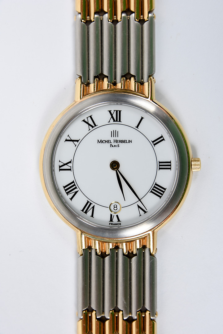 294617. MICHELLE HERBELIN PARIS. Dublee stål herrklocka.