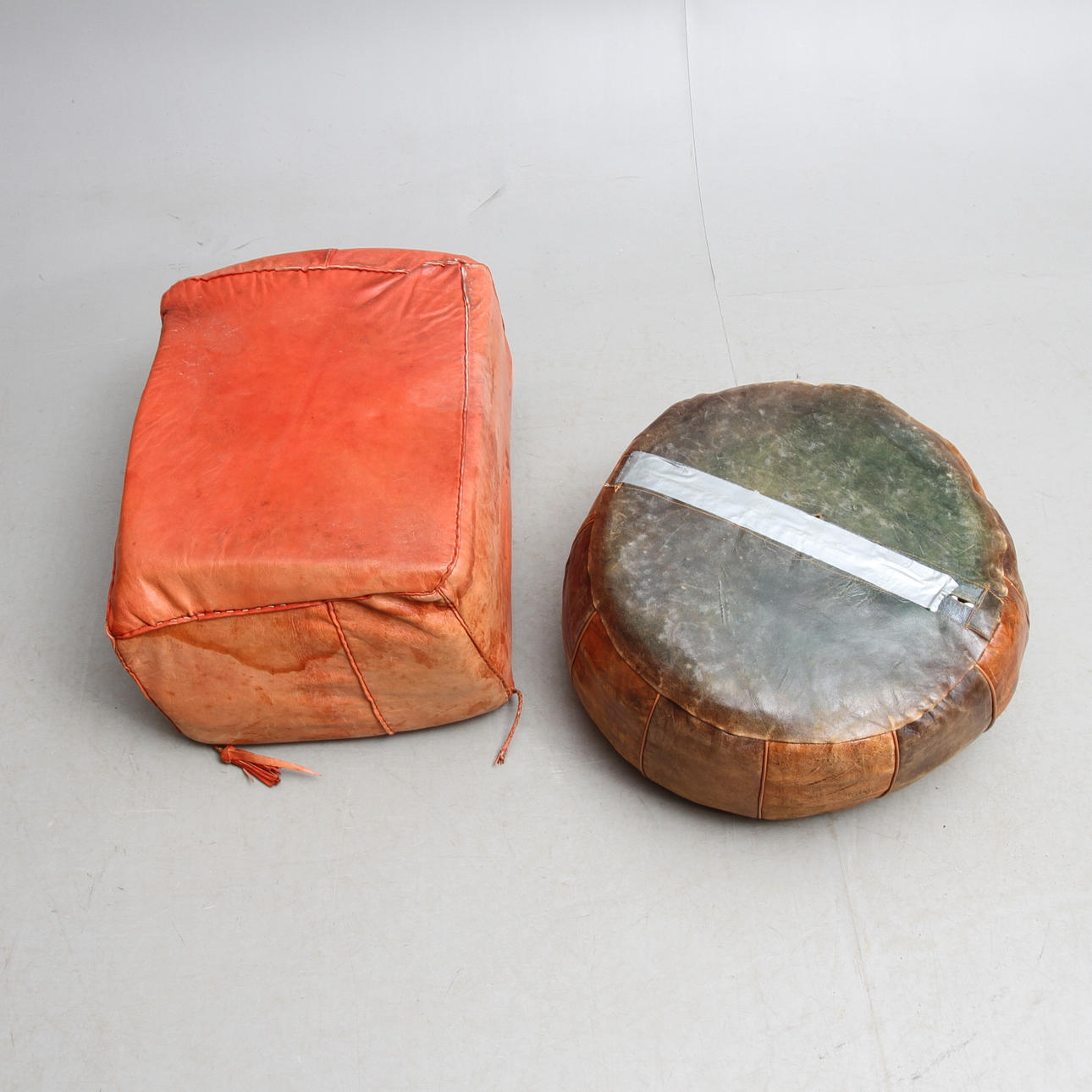 SITTPUFFAR, 2 st, skinn, 1900-tal.