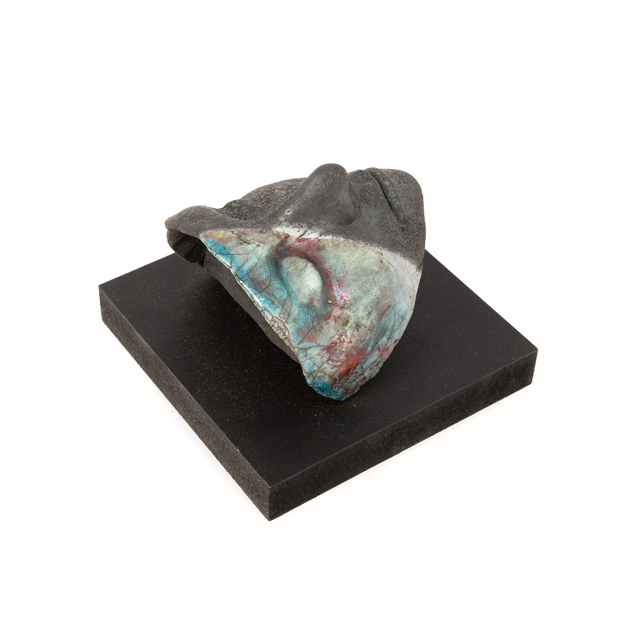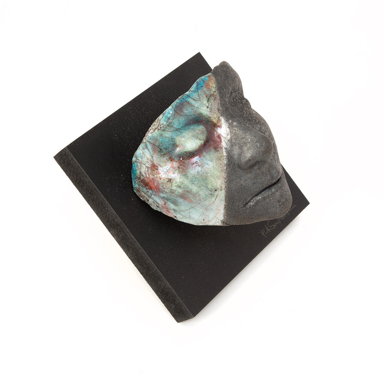 Monterad på sockel i trä. Sockel med måtten 14 x 14 cm. Skulptur med måtten ca 10 x 10 cm.