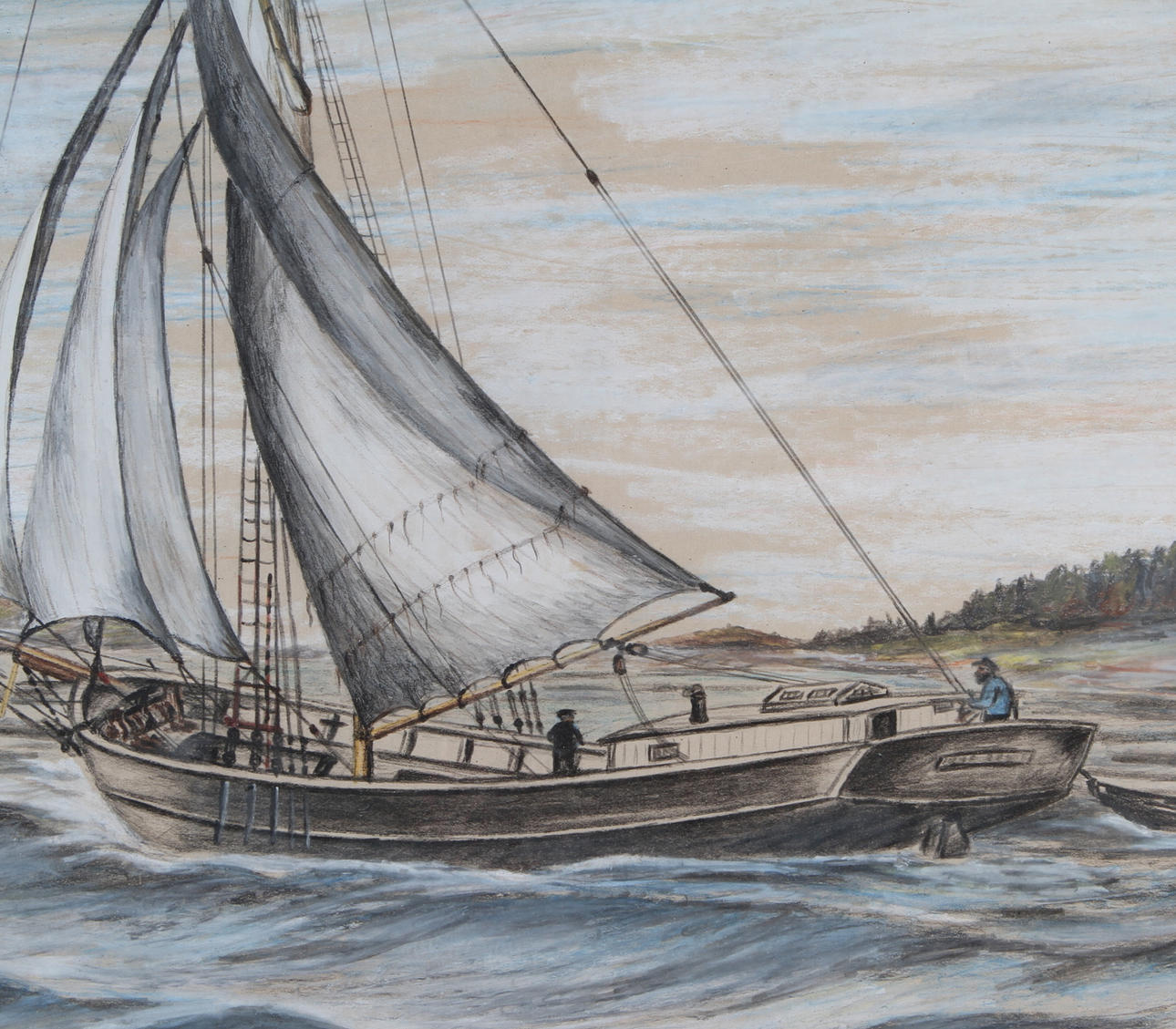 GUSTAF FREDRIKSSON. Seglats, blandteknik, signerad.