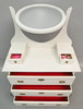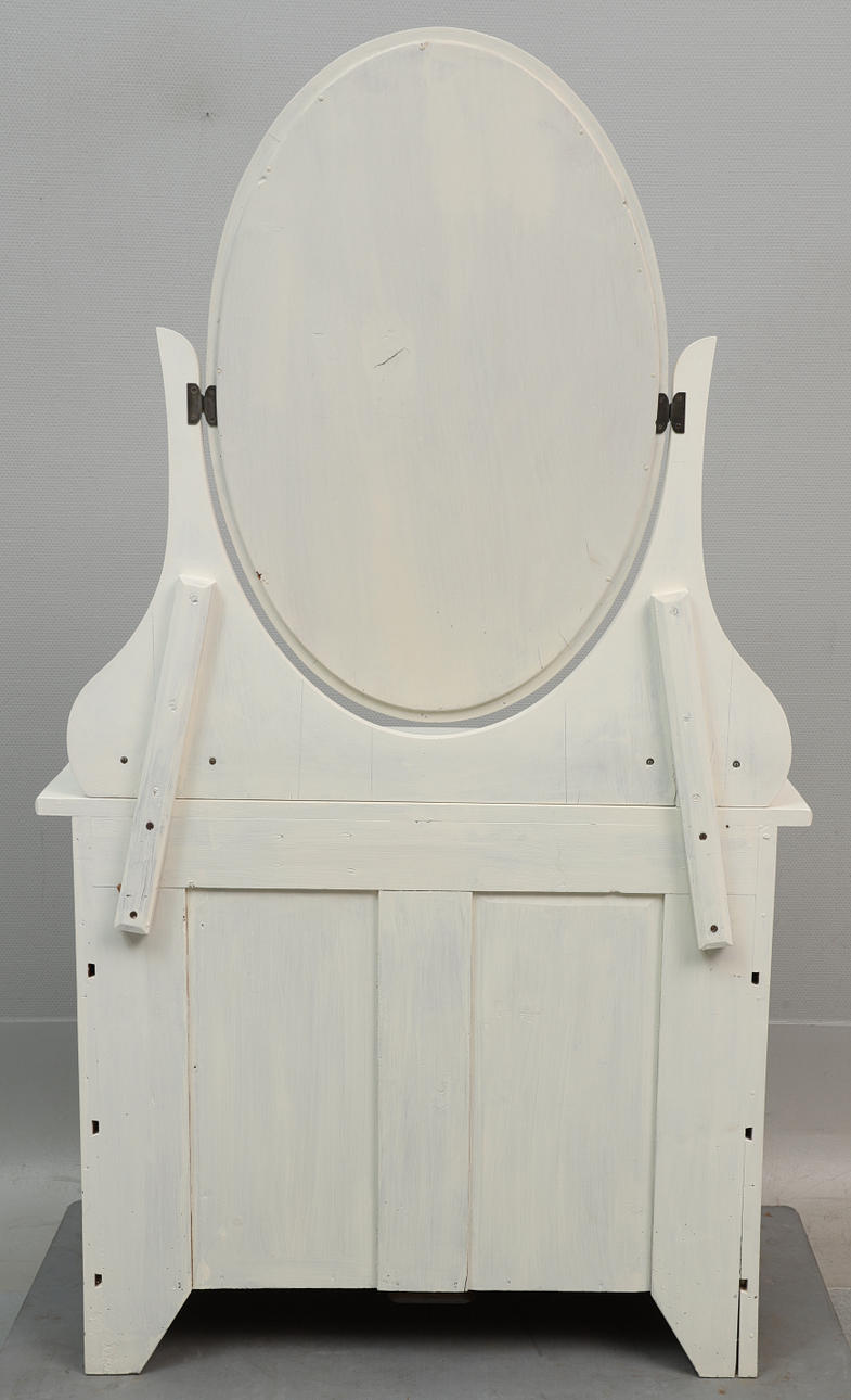 Tre stora låsbara lådor, två mindre lådor vid sidan av den ovala fasettslipade spegeln.