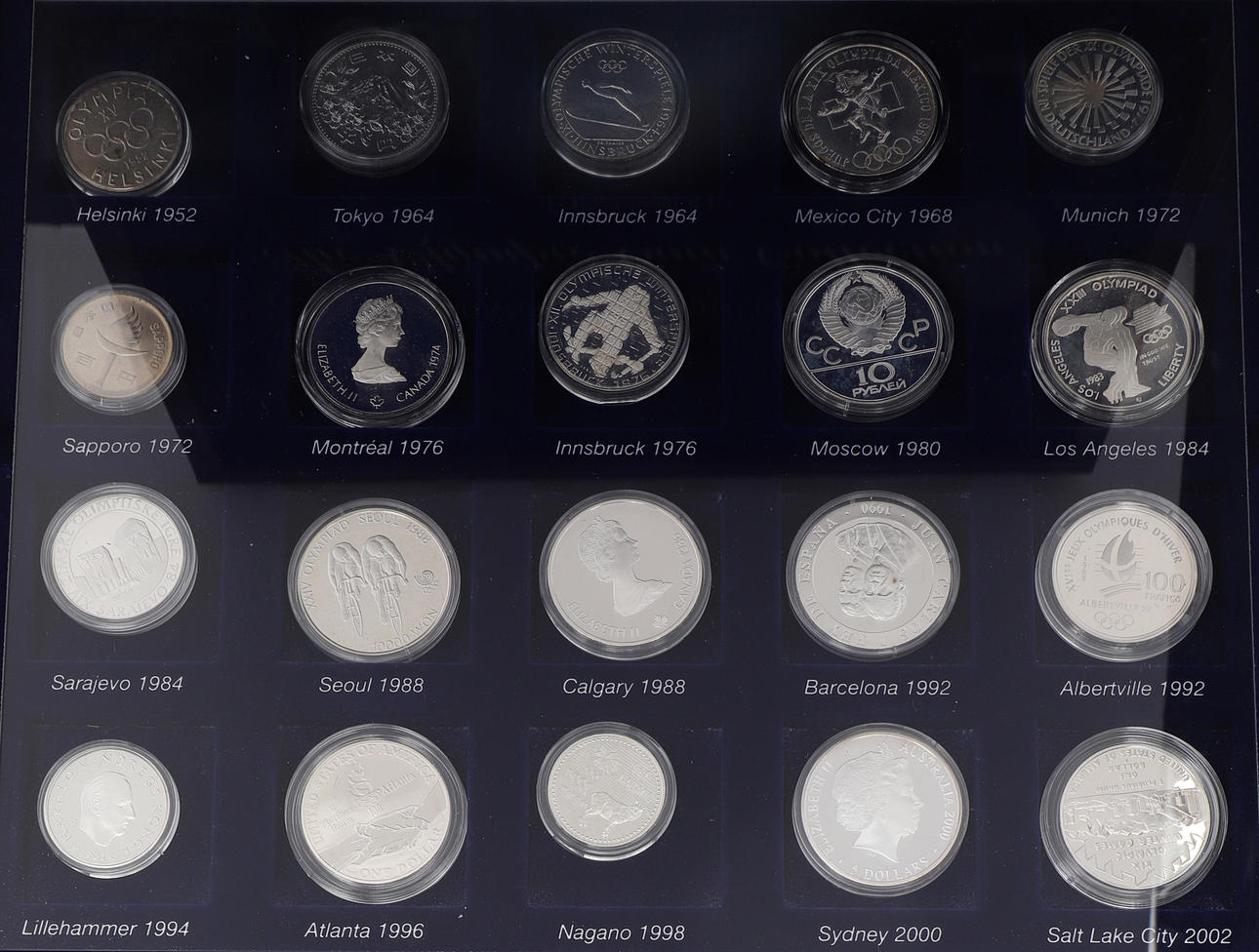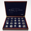 Samlade i ett myntschatull, mått ca: 36x30x7 cm.