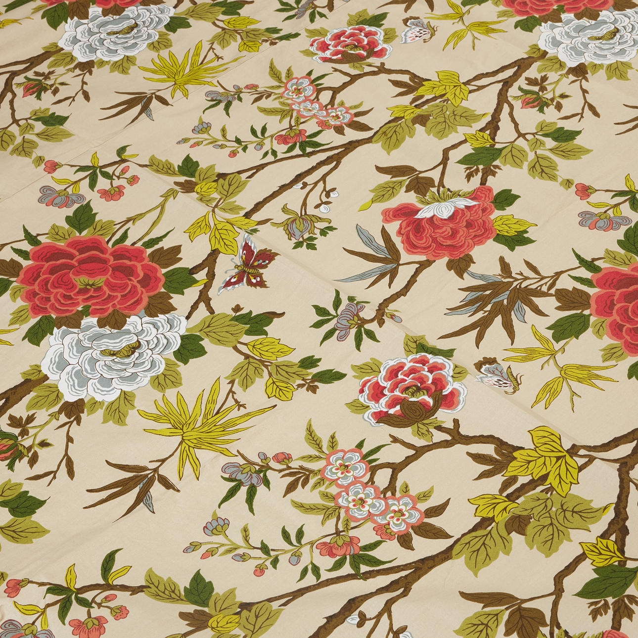 Längd 215+20 cm i dubbelvikt fåll, bredd 170 cm.