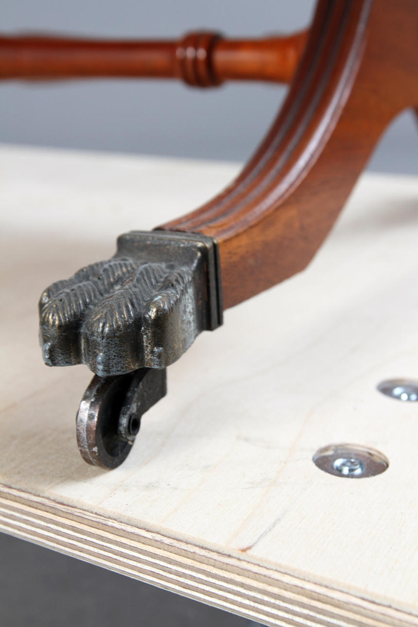 Idegran, på hjultrissor. Längd 130, bredd 50, höjd 57 cm.