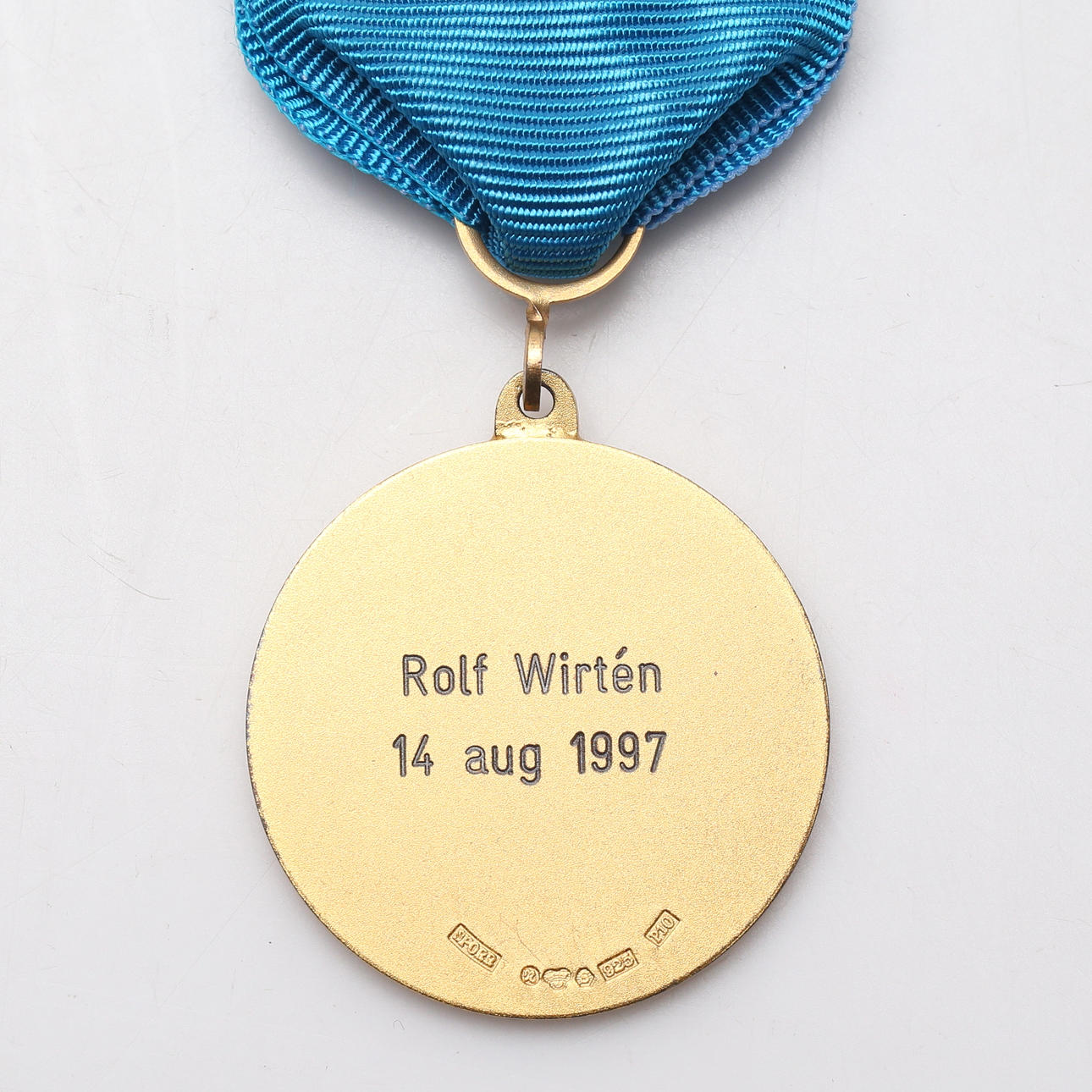 Medalj med inskription "Rolf Wirtén 14 aug 1997.