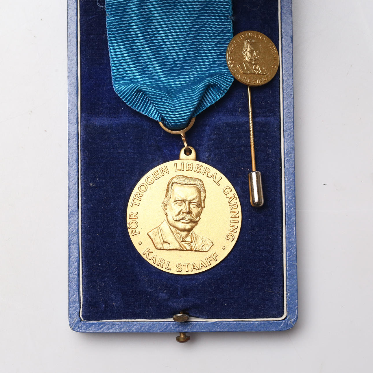 Medalj, nålmärke, silver, För trogen liberal gärning Karl Staff.