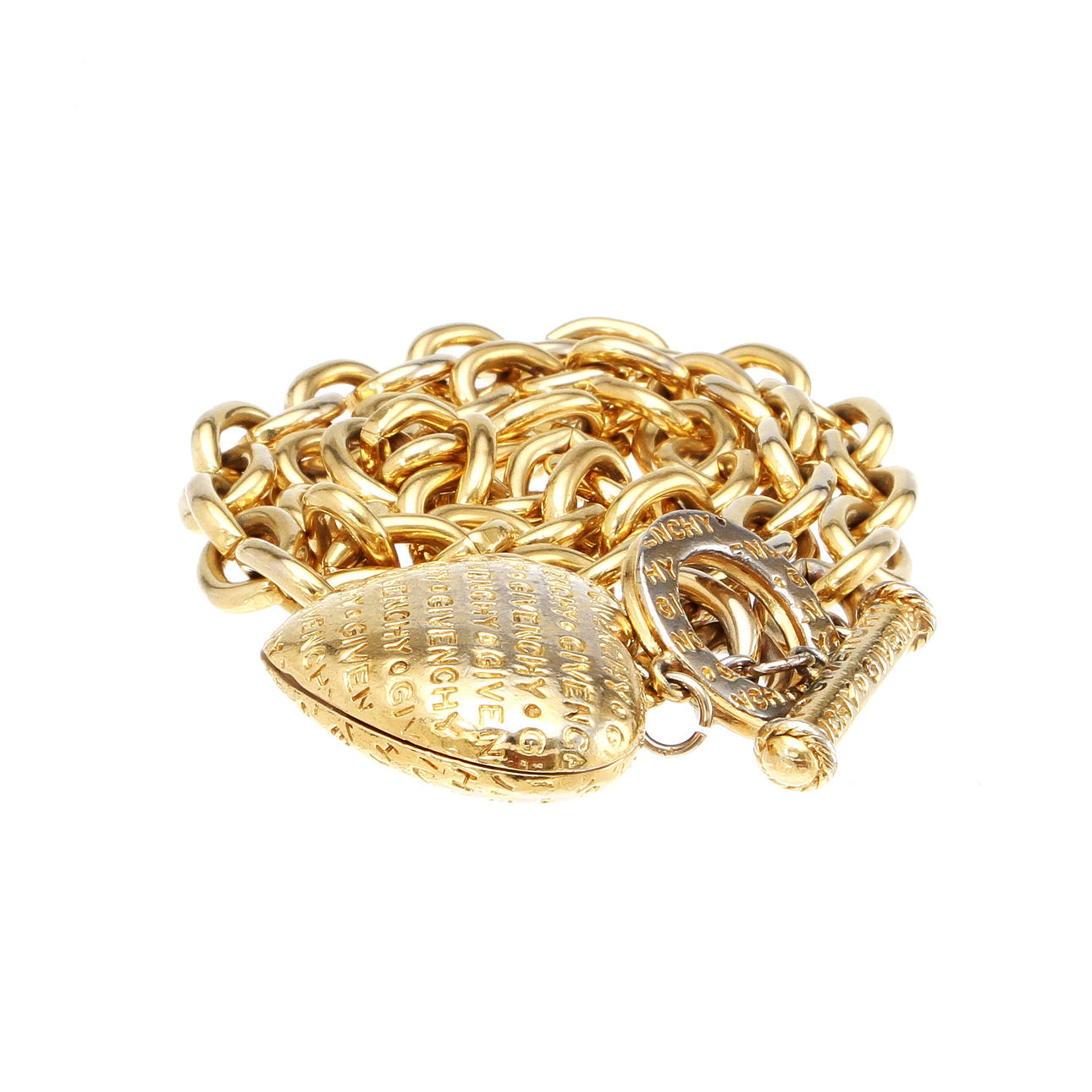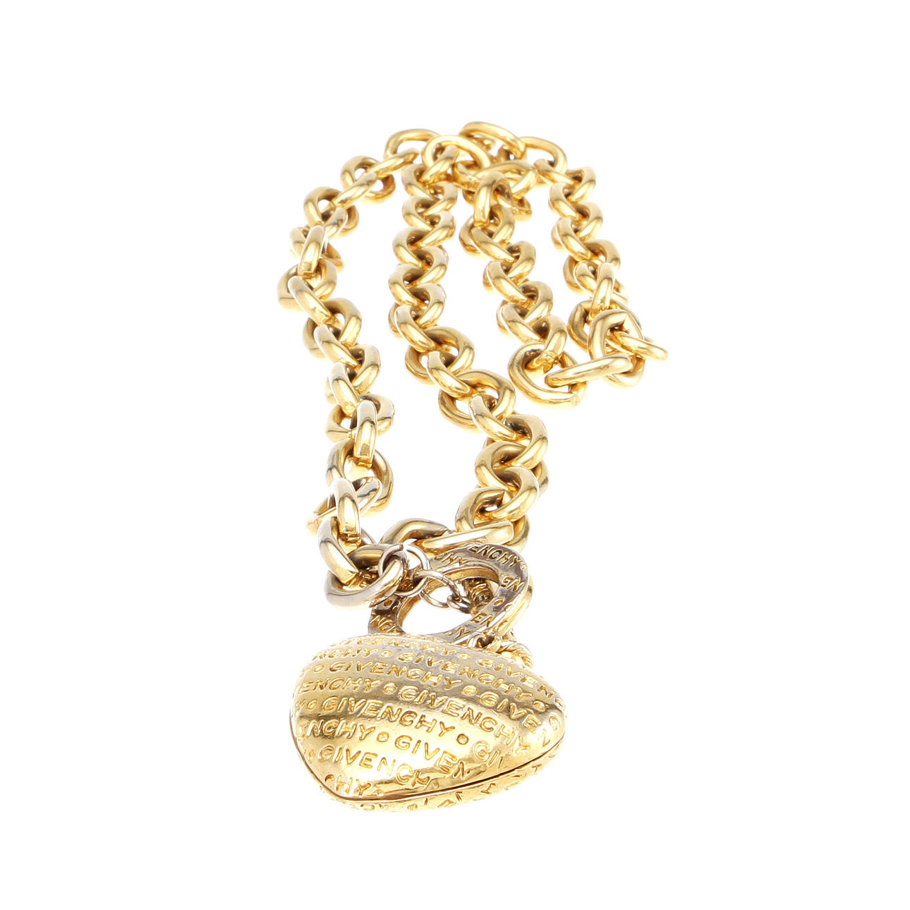 Ankarlänk med togglelås samt hjärtformad logogramsprydd berlock. Längd 43 cm.