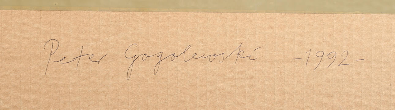 gouache/kartong, monogrammed nedre högra och daterad 1992 på baksidan, i ram