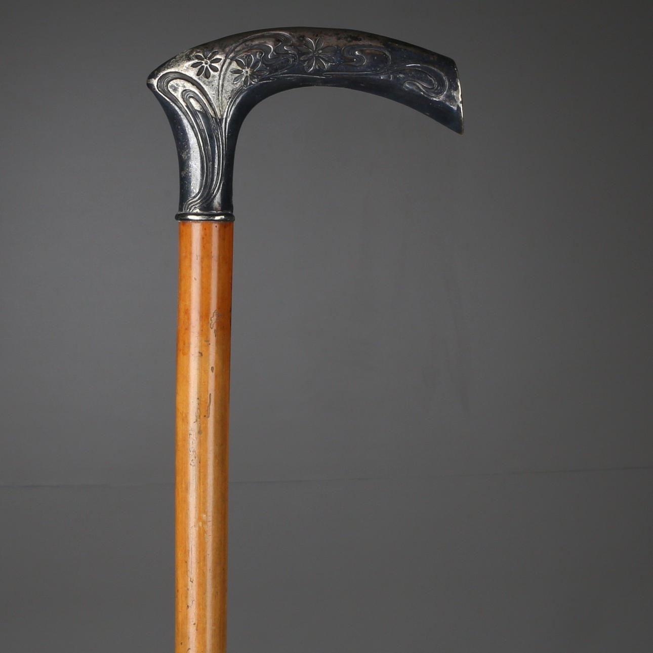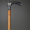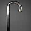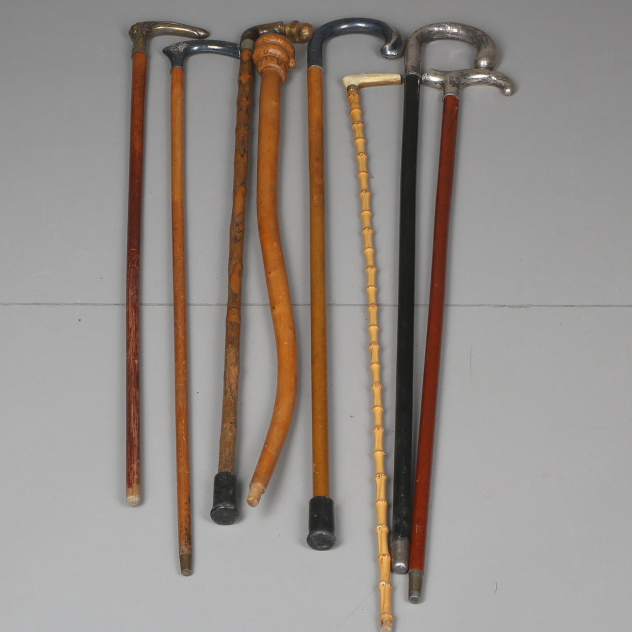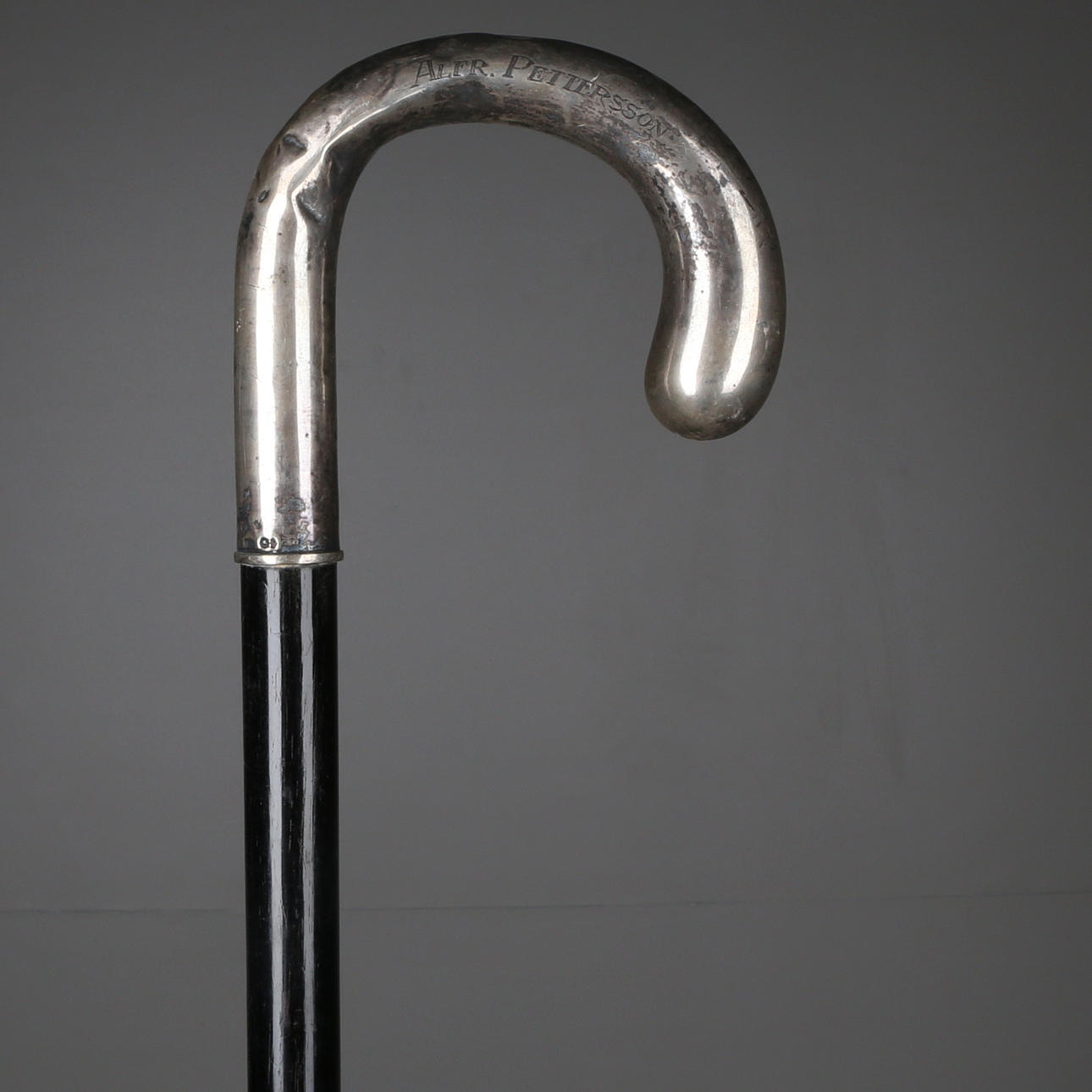 Medföljande 1 st alnmått samt 2 st spatserkäppar. Delvis ben, delvis horn, delvis silver samt trä.