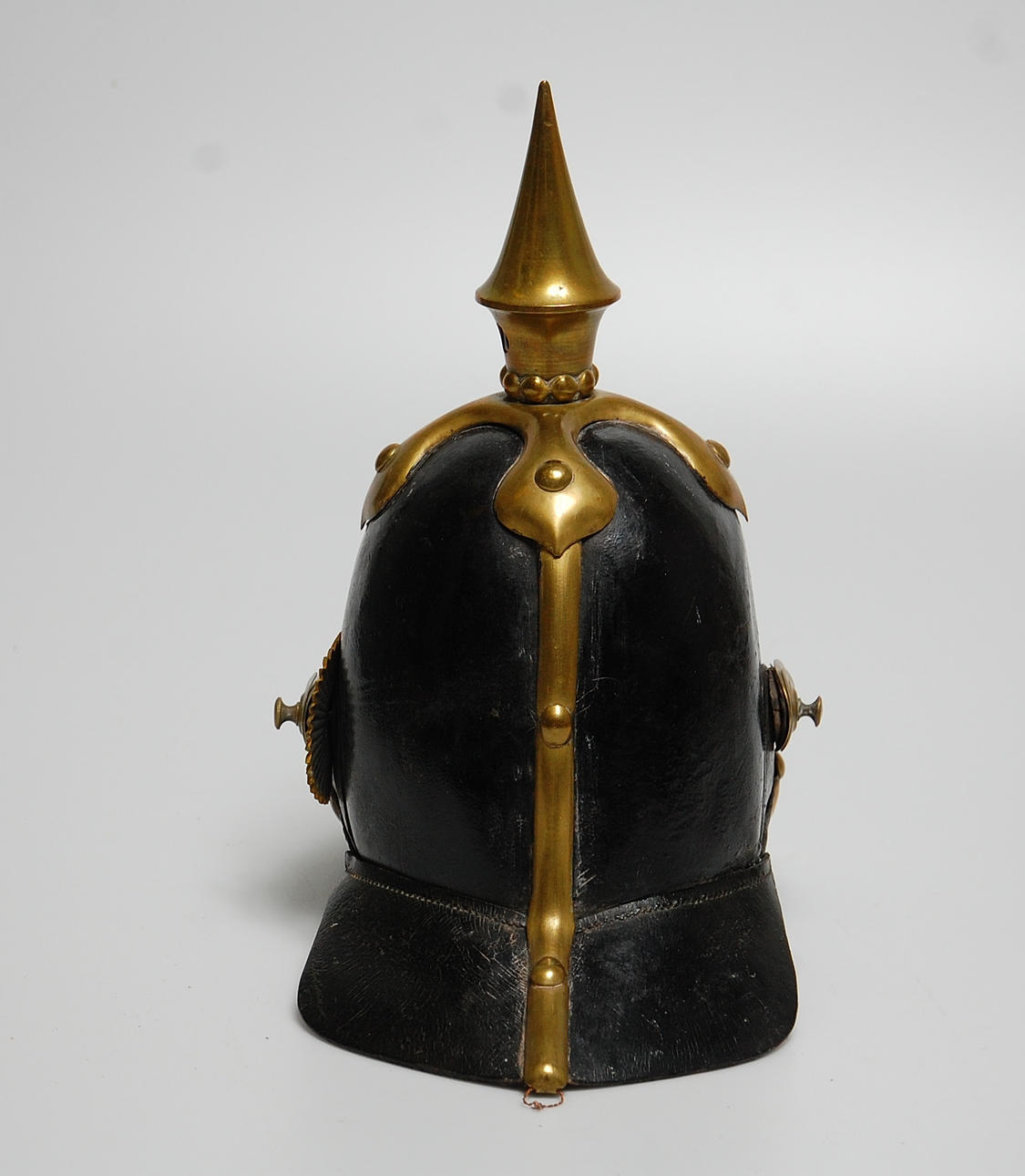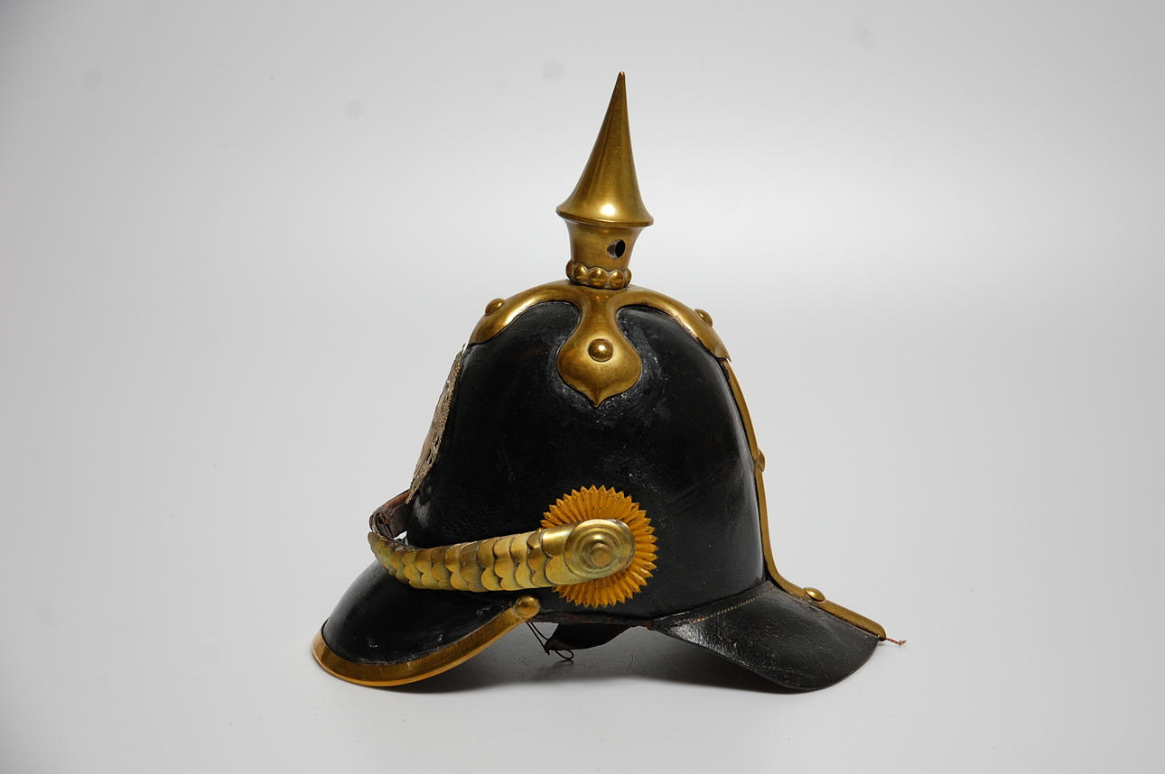 Kask, skinn, mässing.
