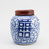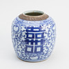 Dekor i underglasyrblått av dubbla lyckotecken. Höjd 21 cm.