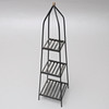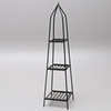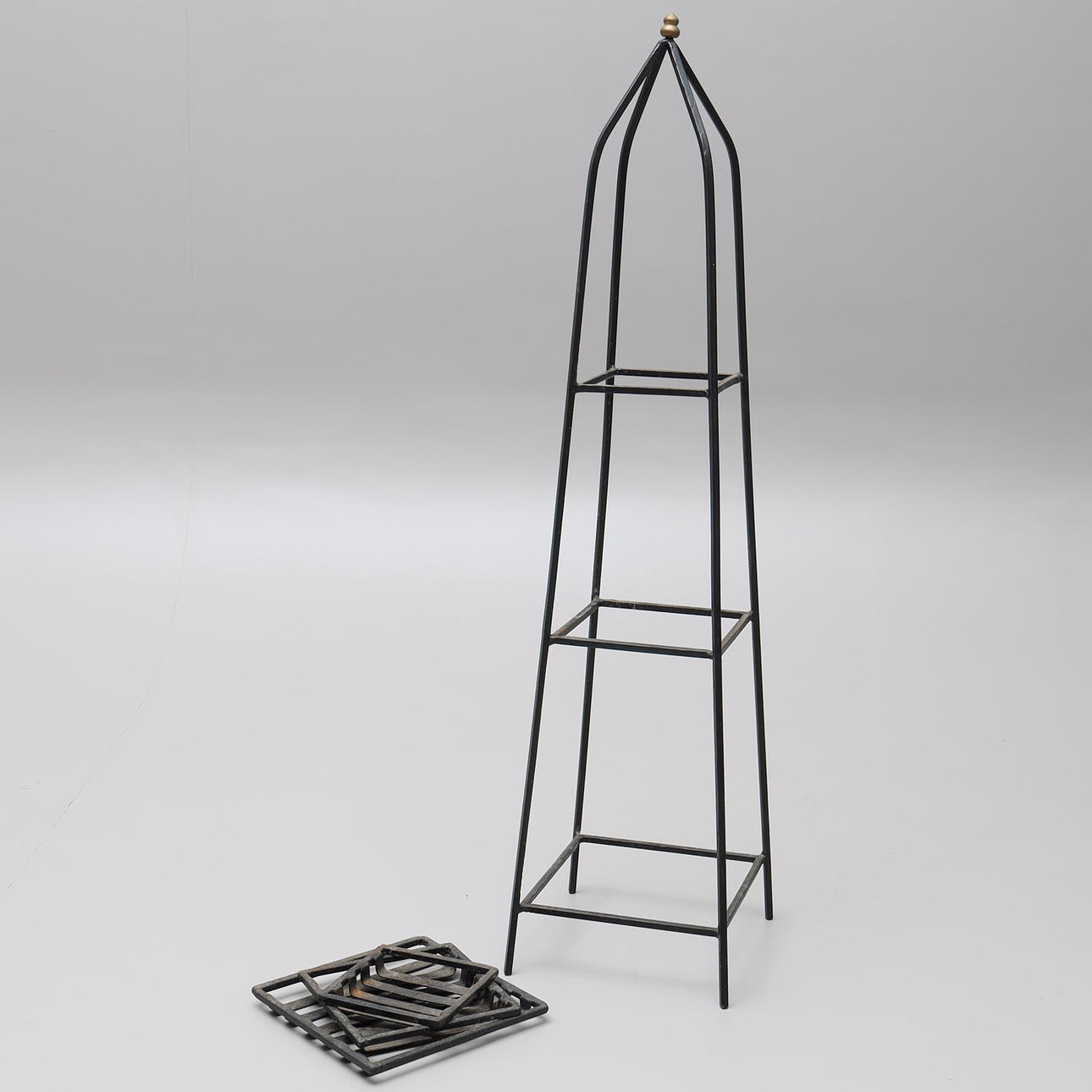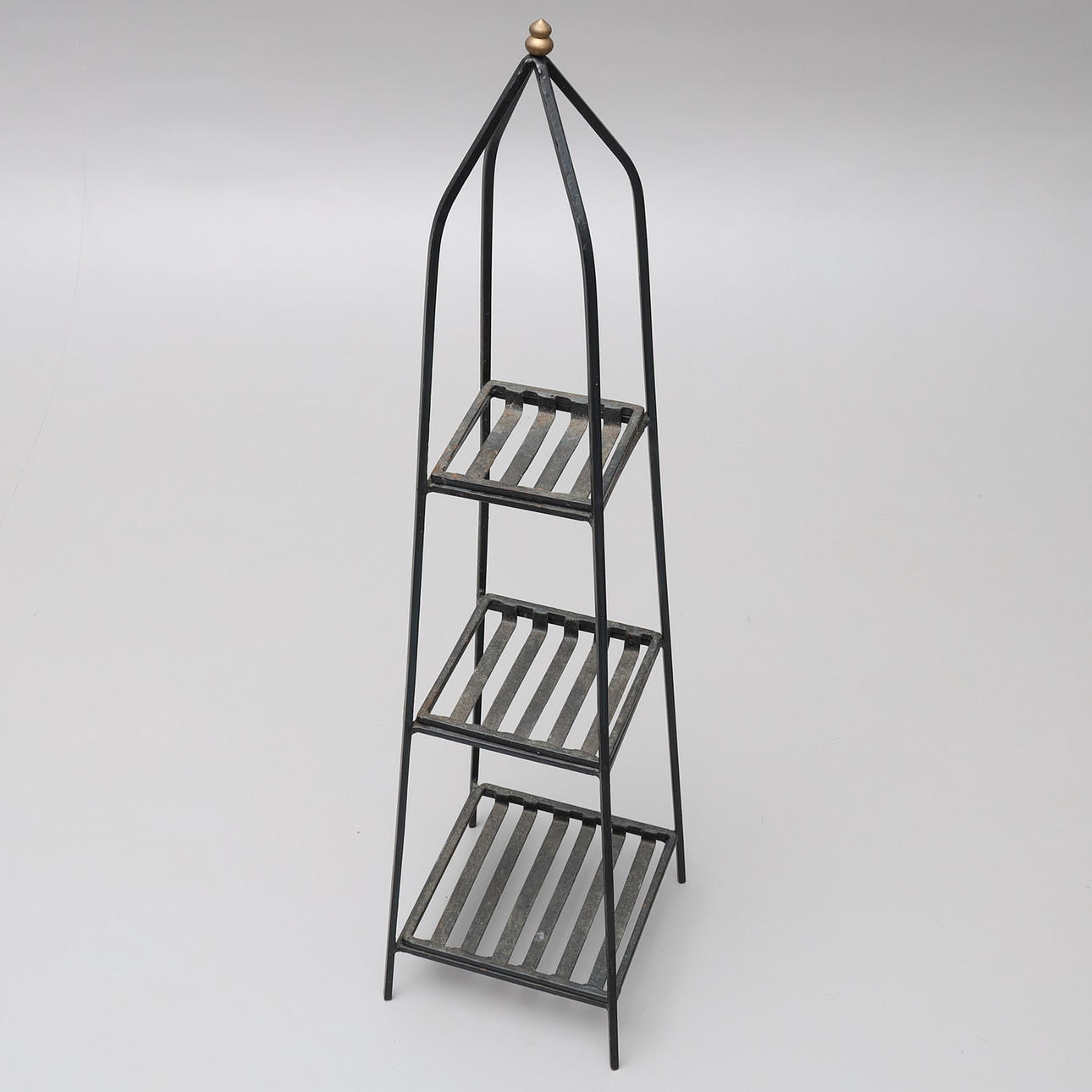 Tornformad hylla i svartmålad metall, löstagbara hyllplan. Höjd 127 cm, bredd 31 cm.