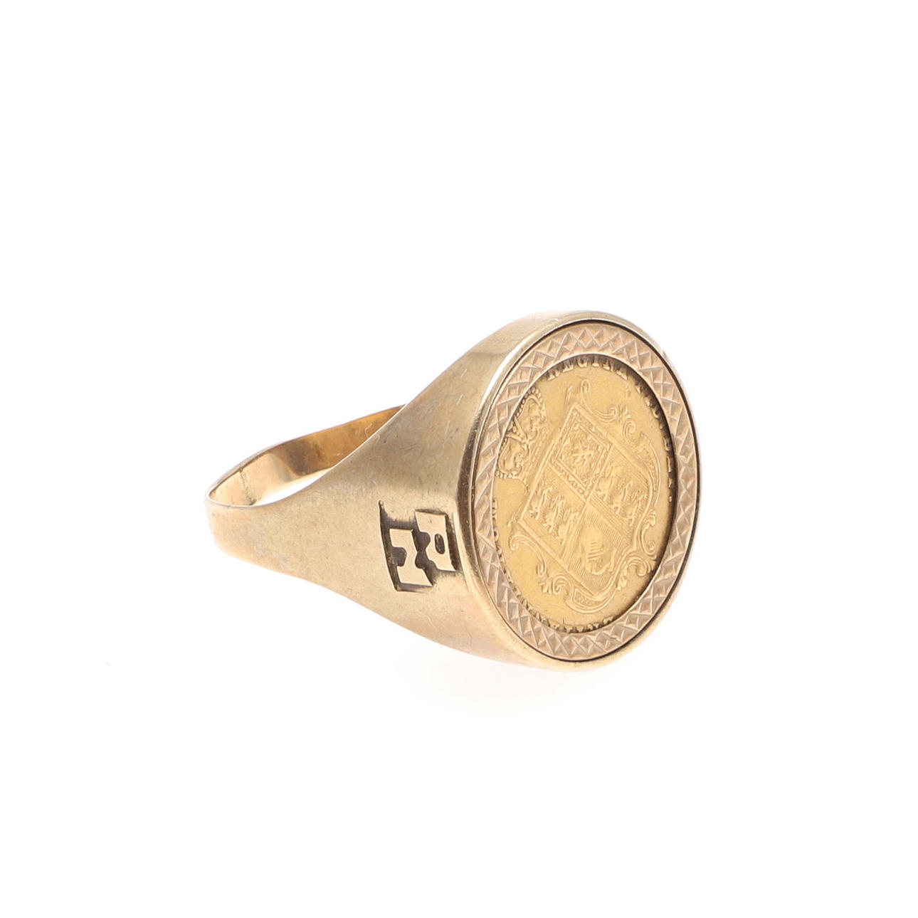 2967897. EN GULD HALV SOVREIGN I 9CT RINGFÄSTE.