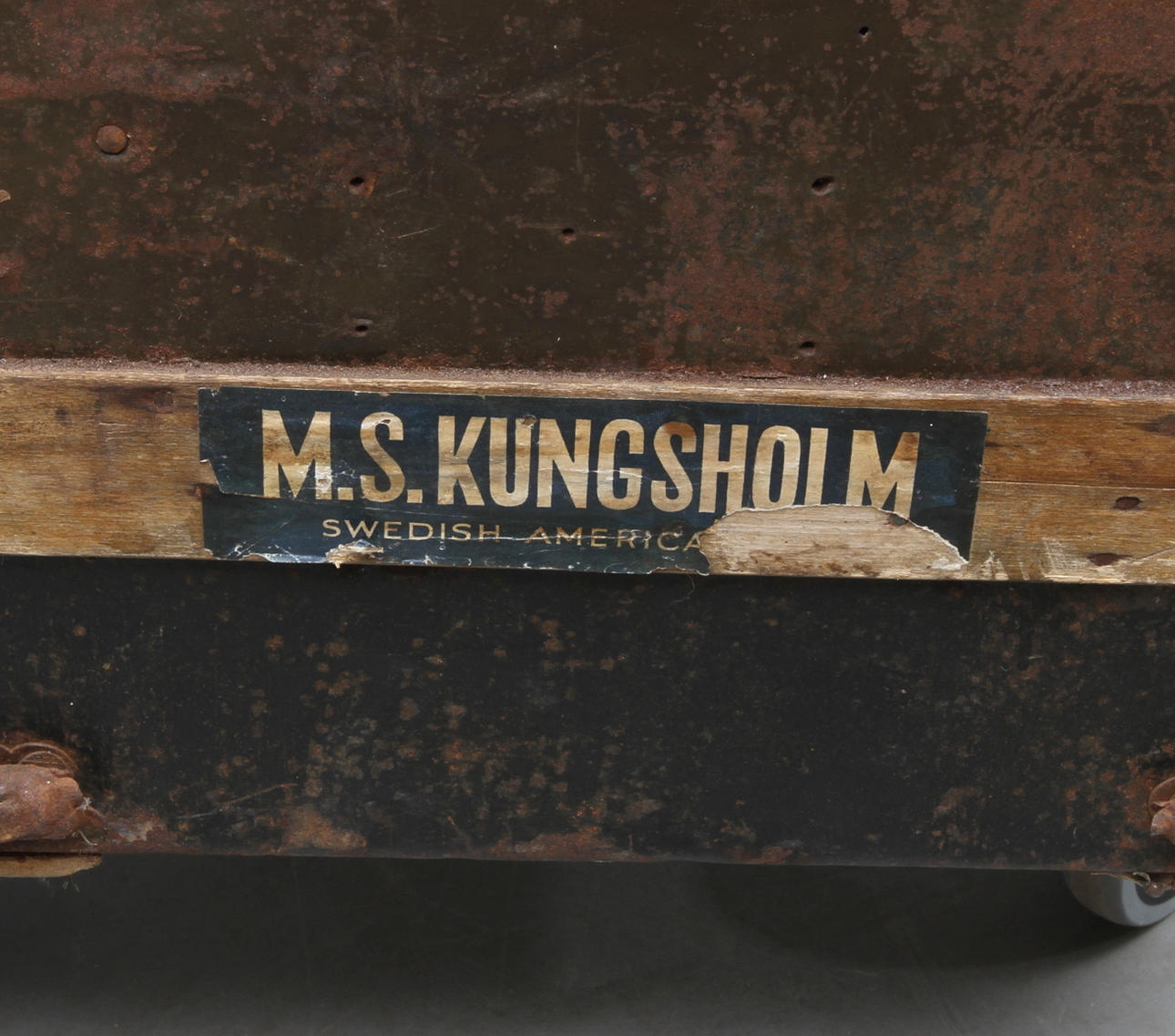 Med etikett från M/S Kungsholm. Längd 93, bredd 54, höjd 58 cm.