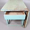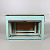 Två lådor i sarg, utfällbar klaff, kopplade ben. Längd 125 ink klaff, bredd 118, höjd 68 cm.