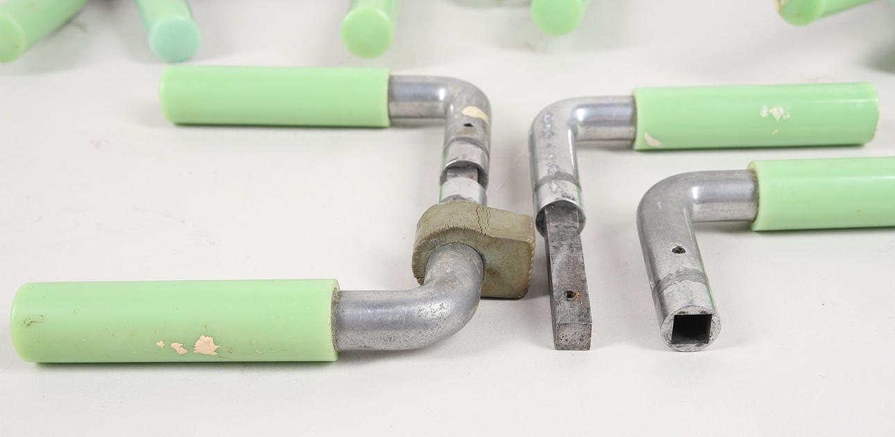 9 par dörrhandtag av grön bakelit.