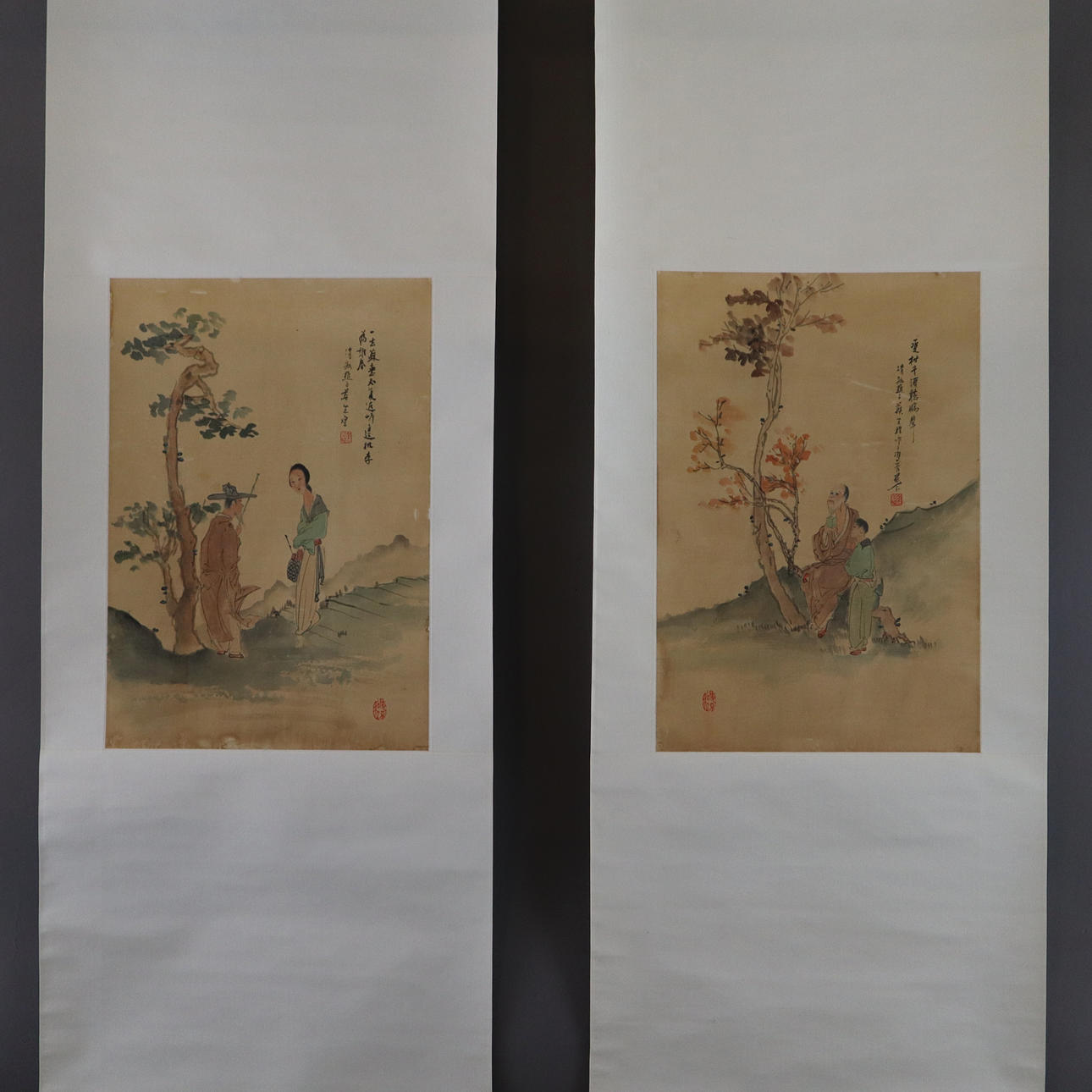 2971542. 2 KINESISKA RULLMÅLNINGAR - Figurer under träd.