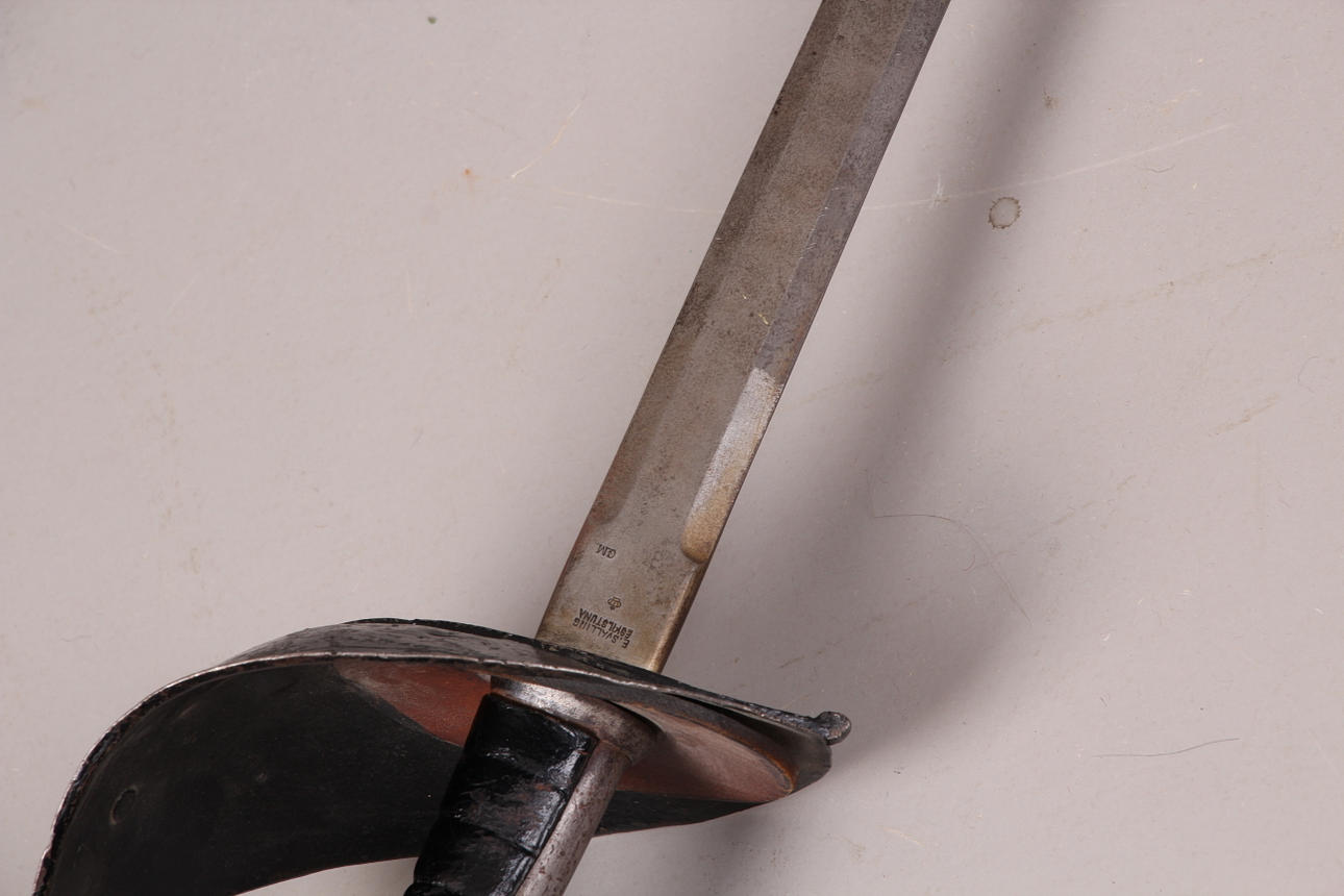 Tvåeggat blad signerad E Svalling, Eskilstuna samt GM Längd blad 91 cm, total längd 107 cm.