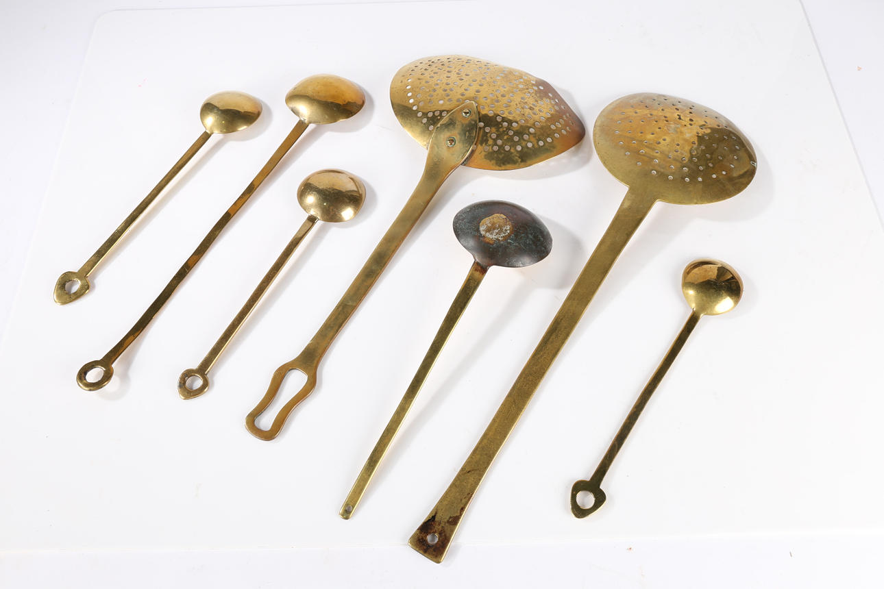Tillsammans med ett gjutet holländskt exempel, två mässingsskänvar från 1700-talet, engelska och tre 1800-talsexempel, (7).