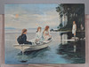 2974686. OIDENTIFIERAD KONSTNÄR. "Sommarkväll" kopia efter Albert Edelfelt, olja på duk, signerad R Persson.