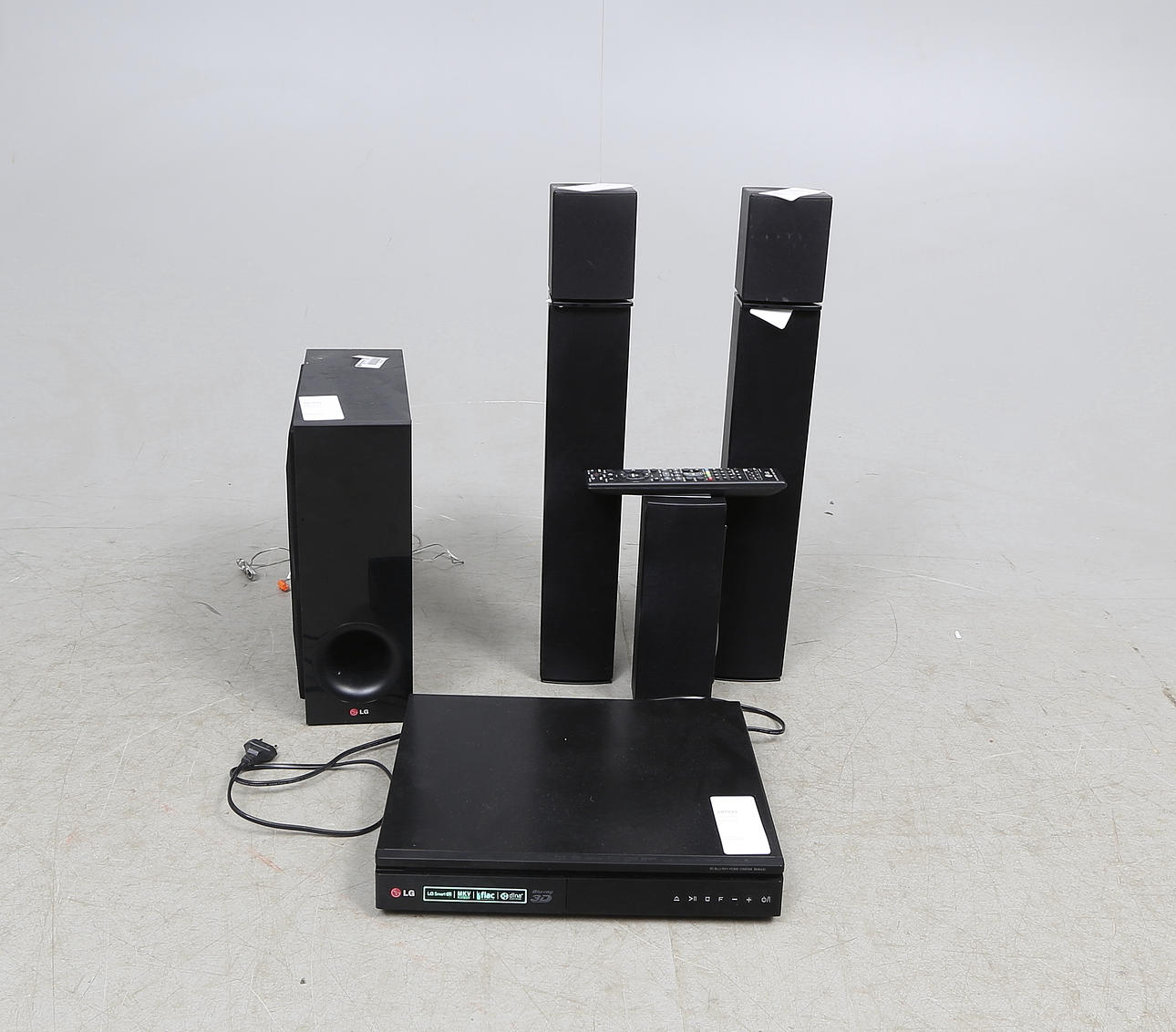 5 högtalare samt sub och blu-ray spelare och fjärrkontroll.