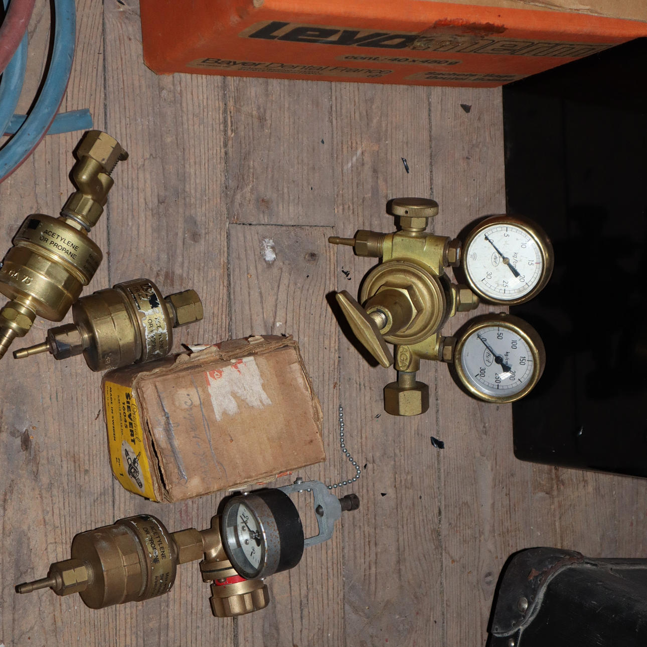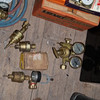 Diverse regulatorer, manometrar, slangar följer.