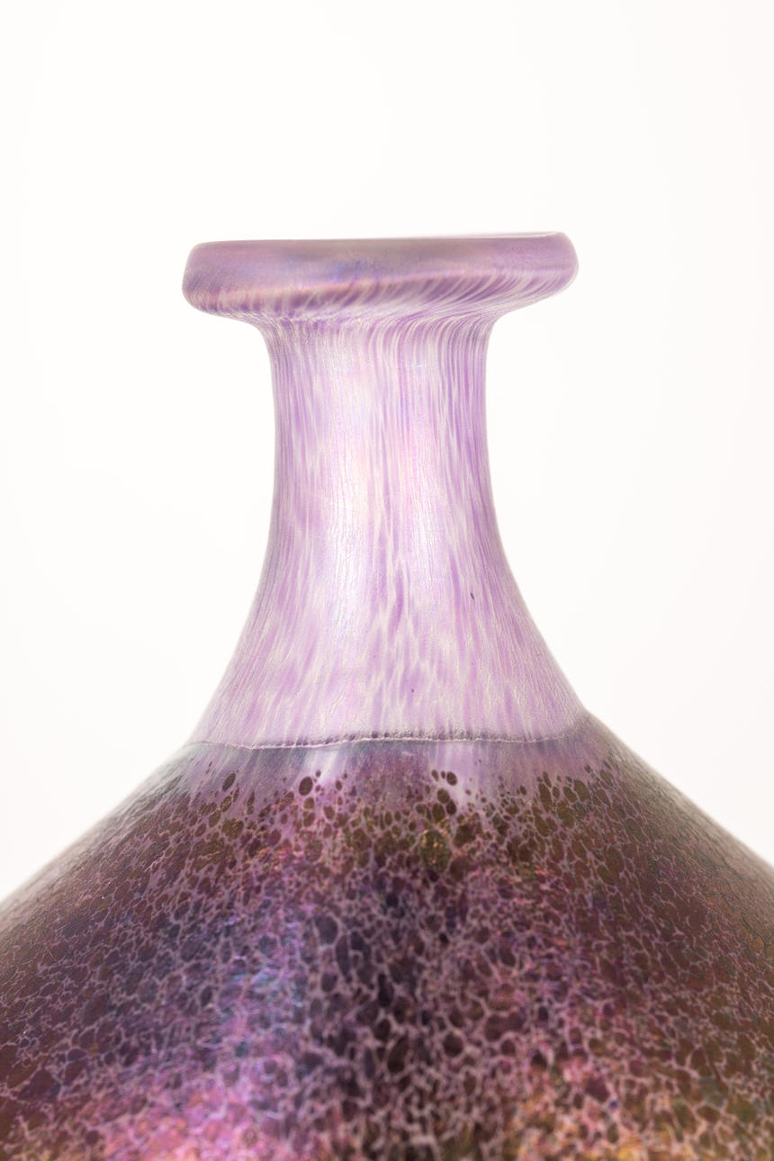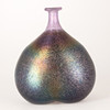 ”Volcano” vas, böjd hjärtformad, strukturerad yta med lila glänsande yta, smal hals med utsvängd mun. Signerad nedan 'Boda Artist Col, B Vallien, 48138', ca. H 20 cm.