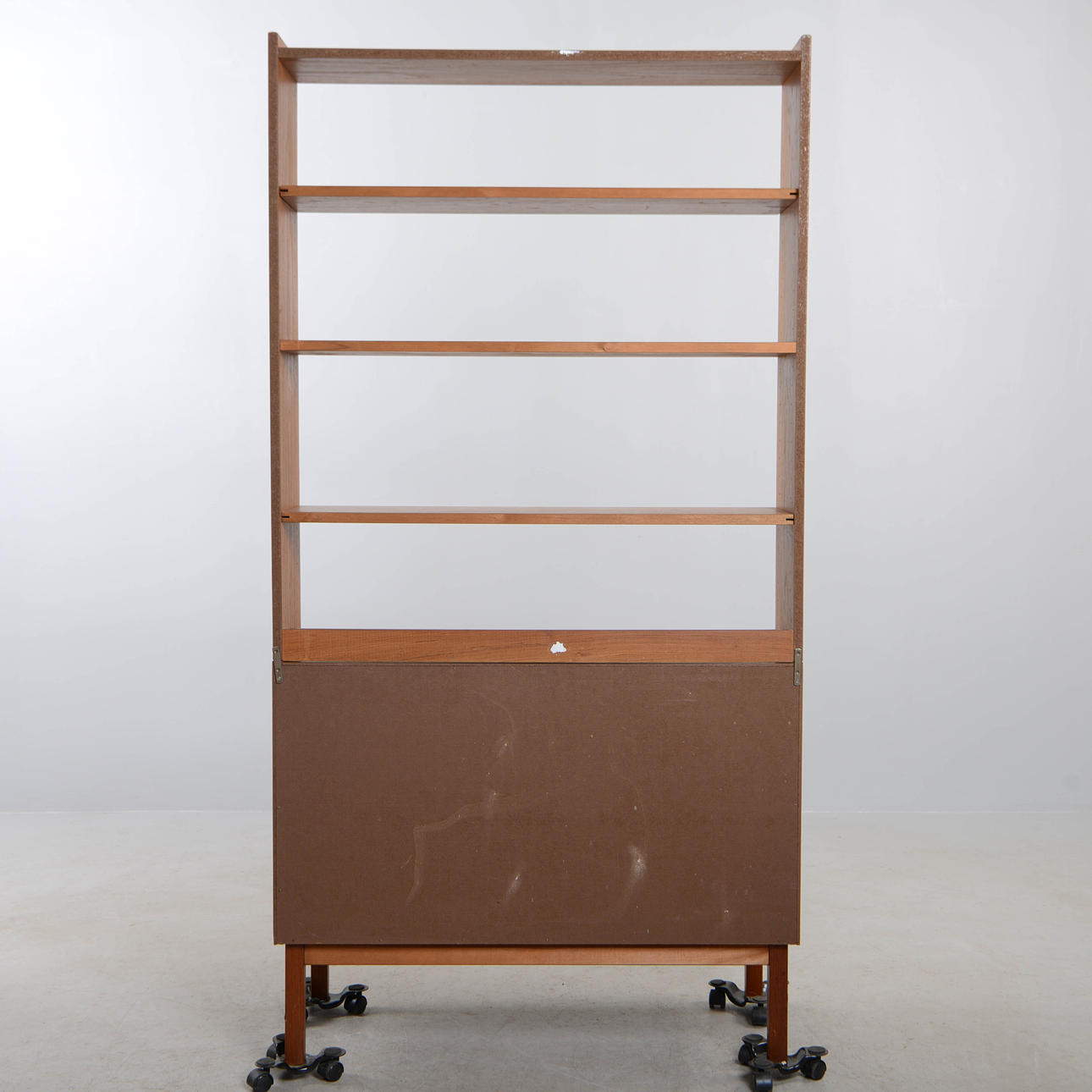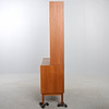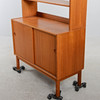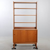 Tudelad. Överdel med hyllaplan. Underdel med skjutdörrar med bakomvarande hyllplan. Bredd 90 cm. Djup 41 cm. Höjd 175 cm.