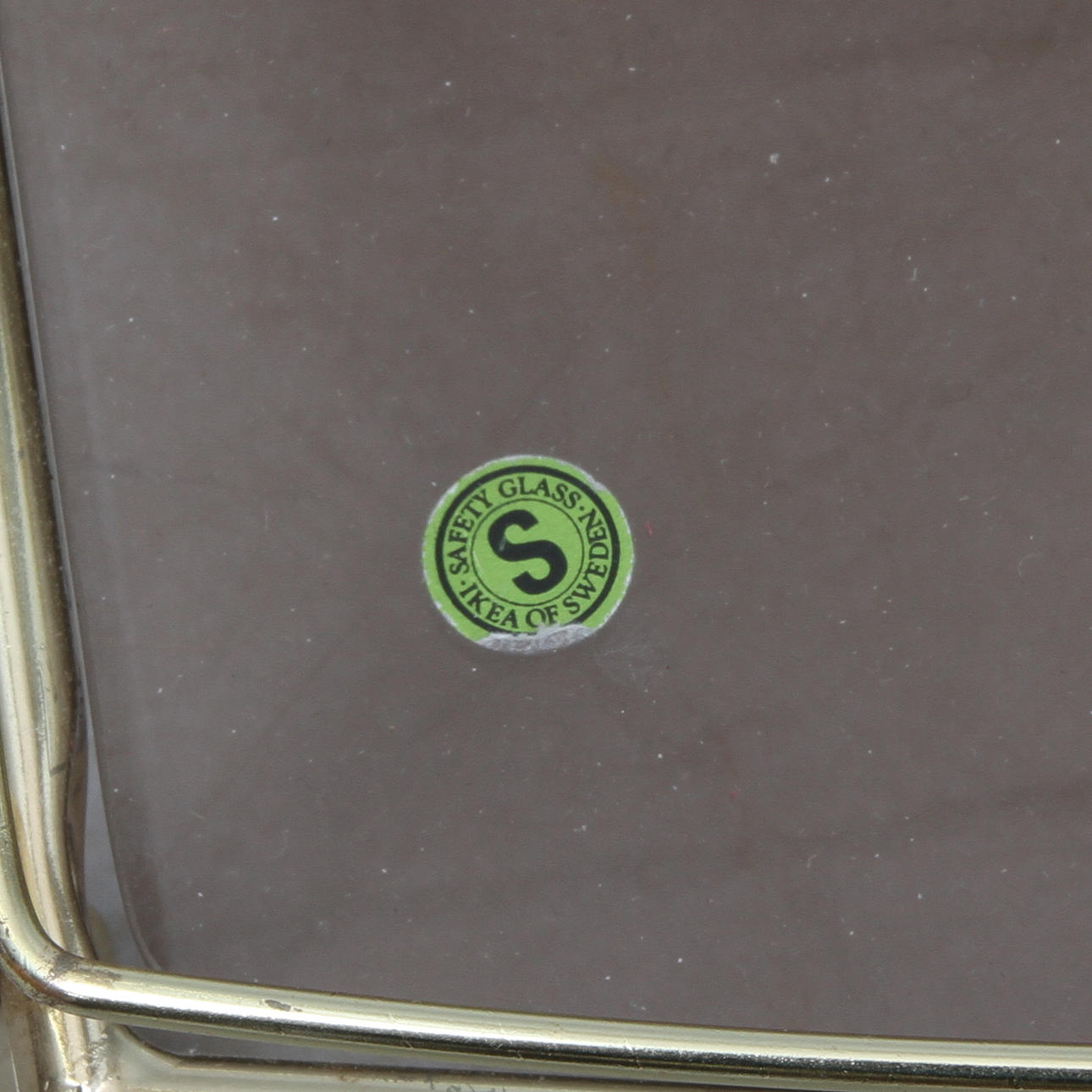 Stomme i gulmetall, rökfärgade glasskivor. Längd 79, bredd 45, höjd 82 cm.