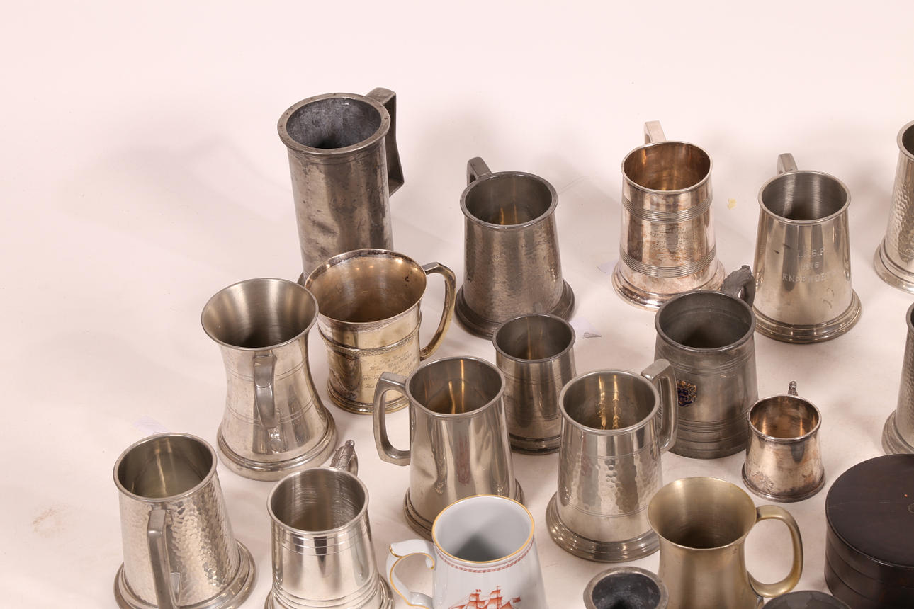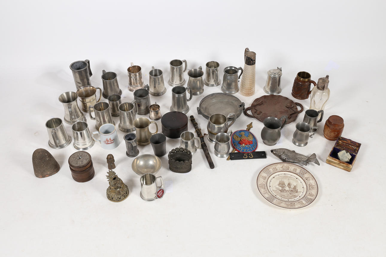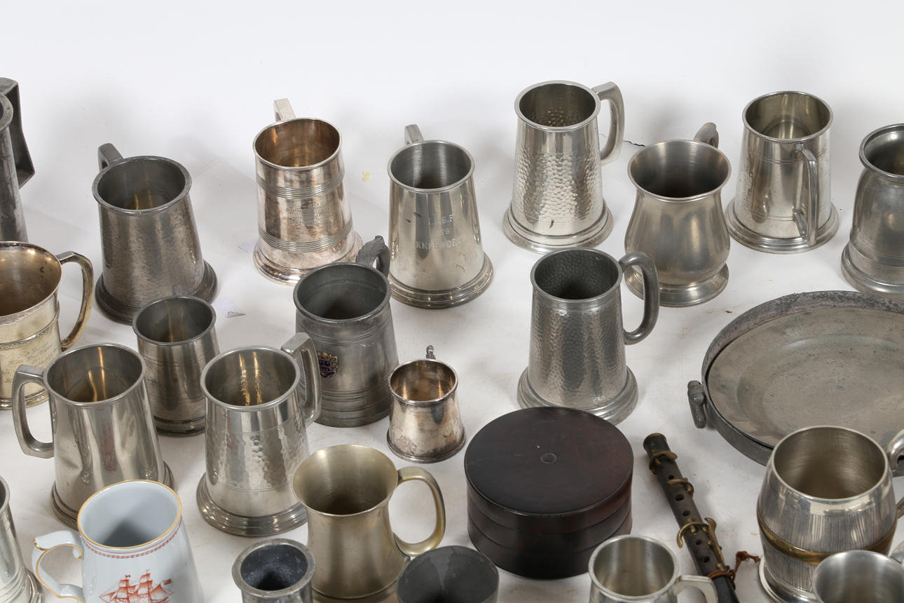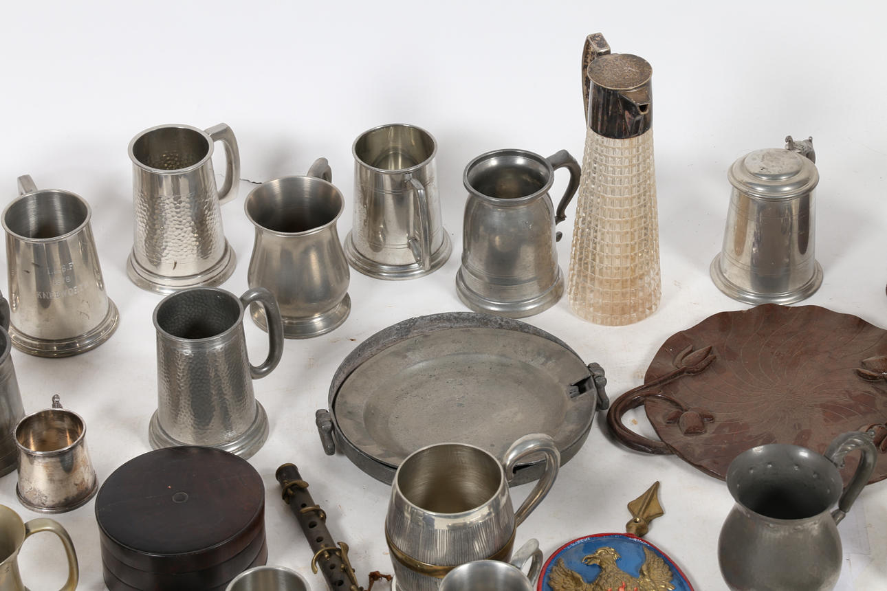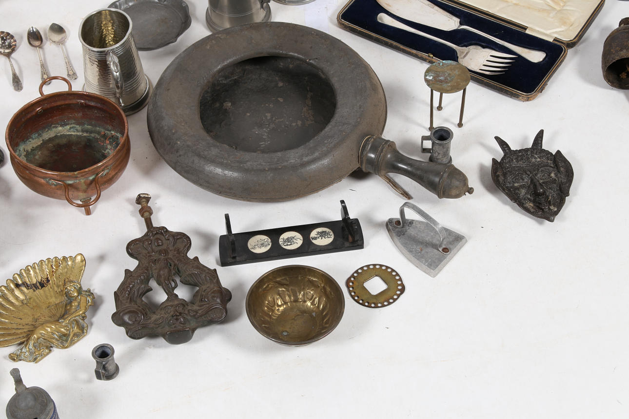 En mycket stor samling metallvaror för att inkludera tankardsskålar etc.